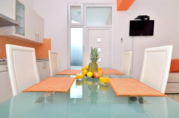 Va oferim 5 apartamente dotate luxos situate in zona turistica Stinjan, nu departe de orasul Pula si de Parcul National Brijuni. Sunt situate la 500 m de mare, la 500 m de centrul orașului Stinjan, la 7 km de centrul orașului Pula, la 11 km de aeroportul din Pula, la 100 m de stația de autobuz. Fiecare apartament dispune de bucatarie in living, dormitor, terasa, baie, aer conditionat, TV/SAT, internet wireless, gratar, loc de parcare. Apartamentul 5 este o garsoniera.