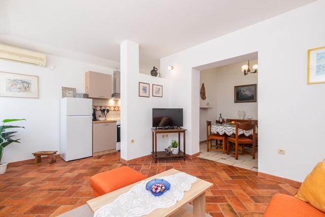 Apartamentul NM este situat in Punat la parterul unei case familiale cu gradina amenajata si loc de parcare. Casa este la 15 minute de mers pe jos de centrul satului si la 5 minute de prima plaja. Apartamentul renovat este format dintr-un dormitor cu pat matrimonial (180*200), o baie, o bucatarie, o sufragerie, un living, o sala de lectura si o terasa. Apartament spațios și complet echipat pentru o ședere și vacanță plăcută. Bine ati venit!