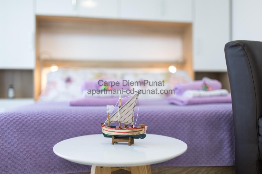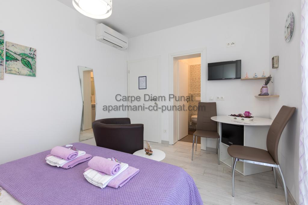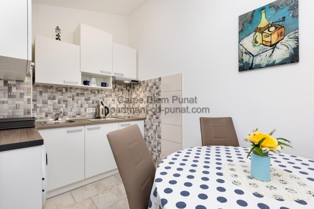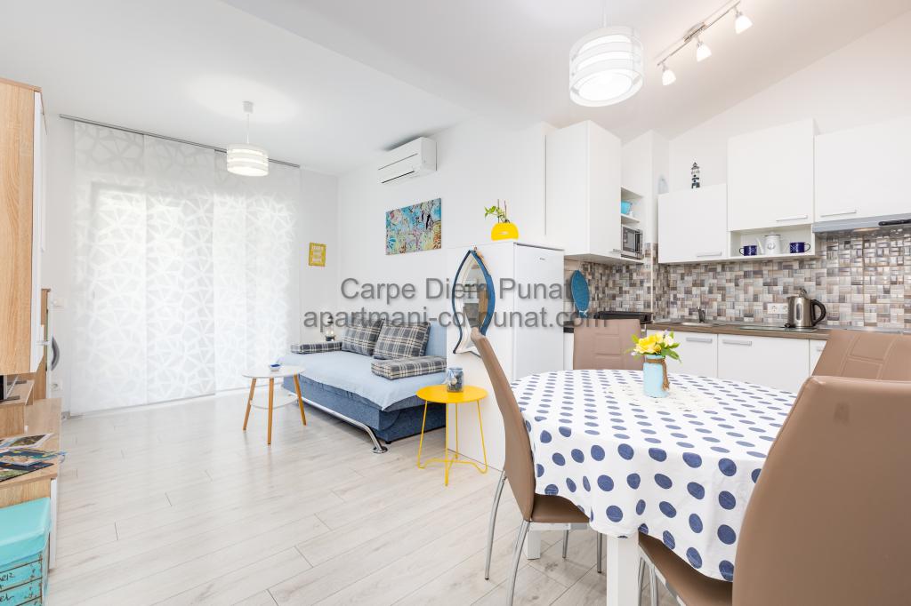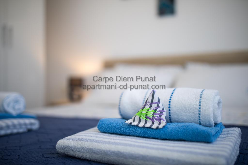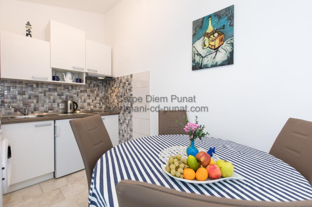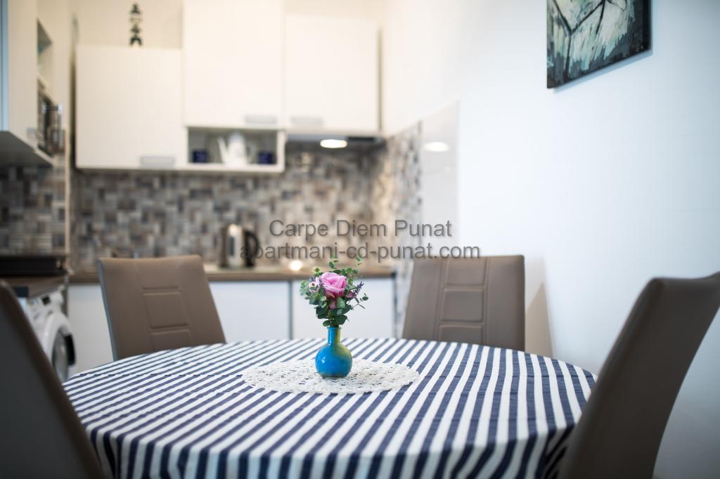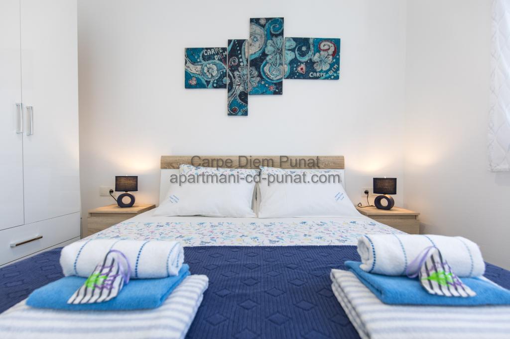 Carpe Diem Apartamentele sunt situate în satul Punat aproape de plajele frumoase Punat. Va oferim doua apartamente si o camera - capacitatea maximă totală de 12 de persoane. Apartamentele sunt situate la primul etaj al unei case noi. Inclusiv ustensile complete de bucătărie și tacâmuri, frigider, cuptor electric, cuptor cu microunde, filtru de cafea. De asemenea, apartamentele sunt dotate cu lenjerie de pat și prosoape. Pretul include parcare, Wi-Fi și aer condiționat în toate camerele. La plajă aveți 40m sau 1 minut. O plimbare de 15 minute veți ajunge la centrul de Punat, unde veți găsi magazine, farmacie, oficiu postal, banca, restaurante, brutării, pește și altele asemenea. În apropierea casei este un zgomot restaurant.