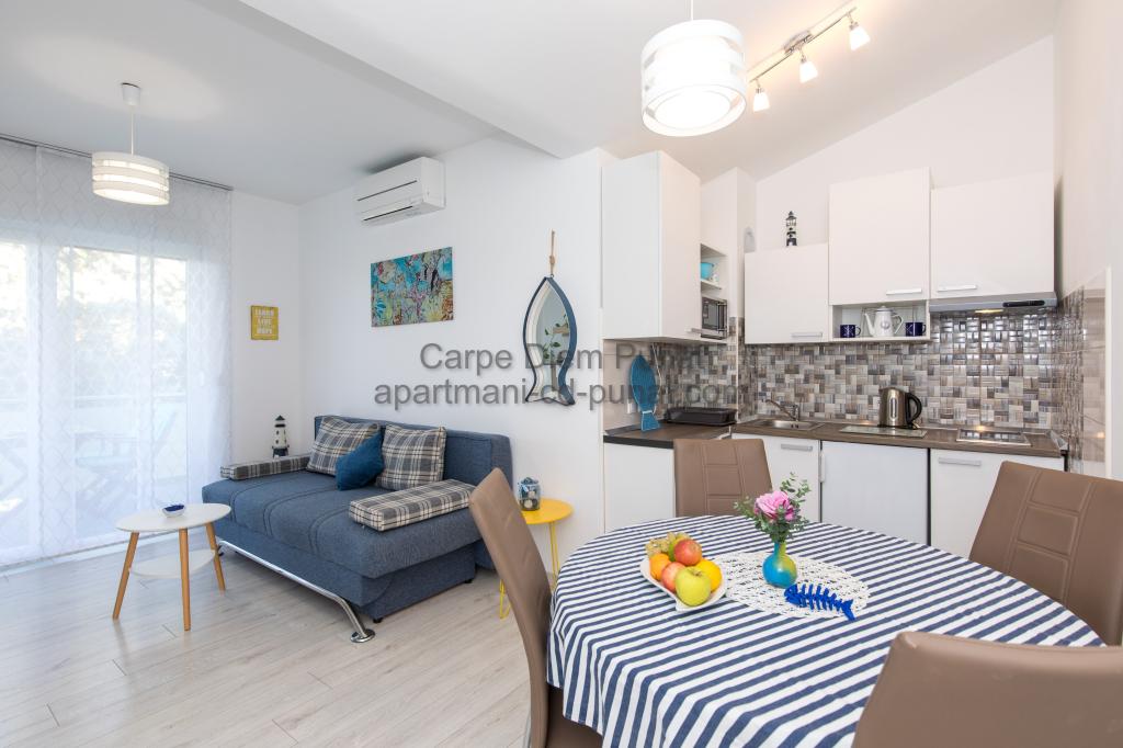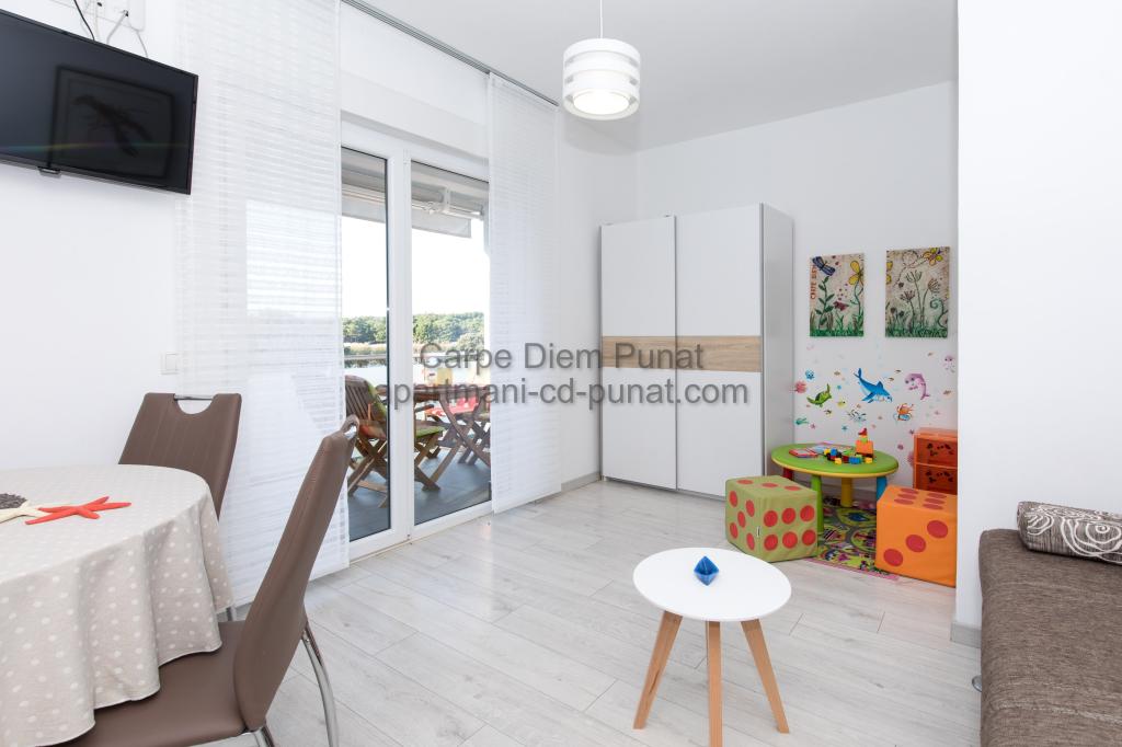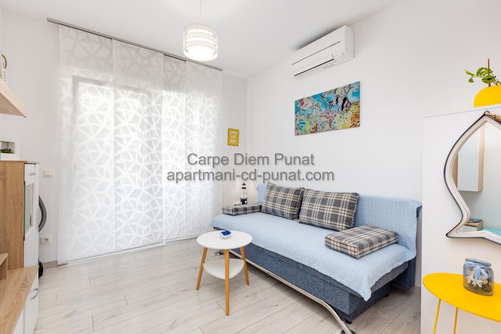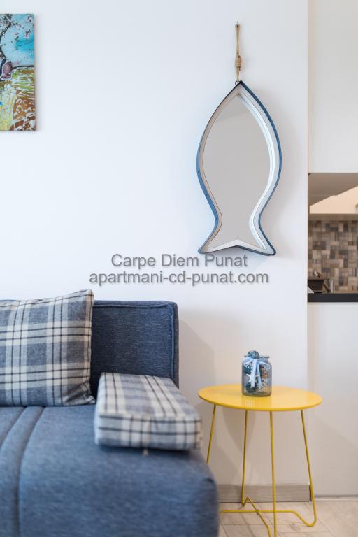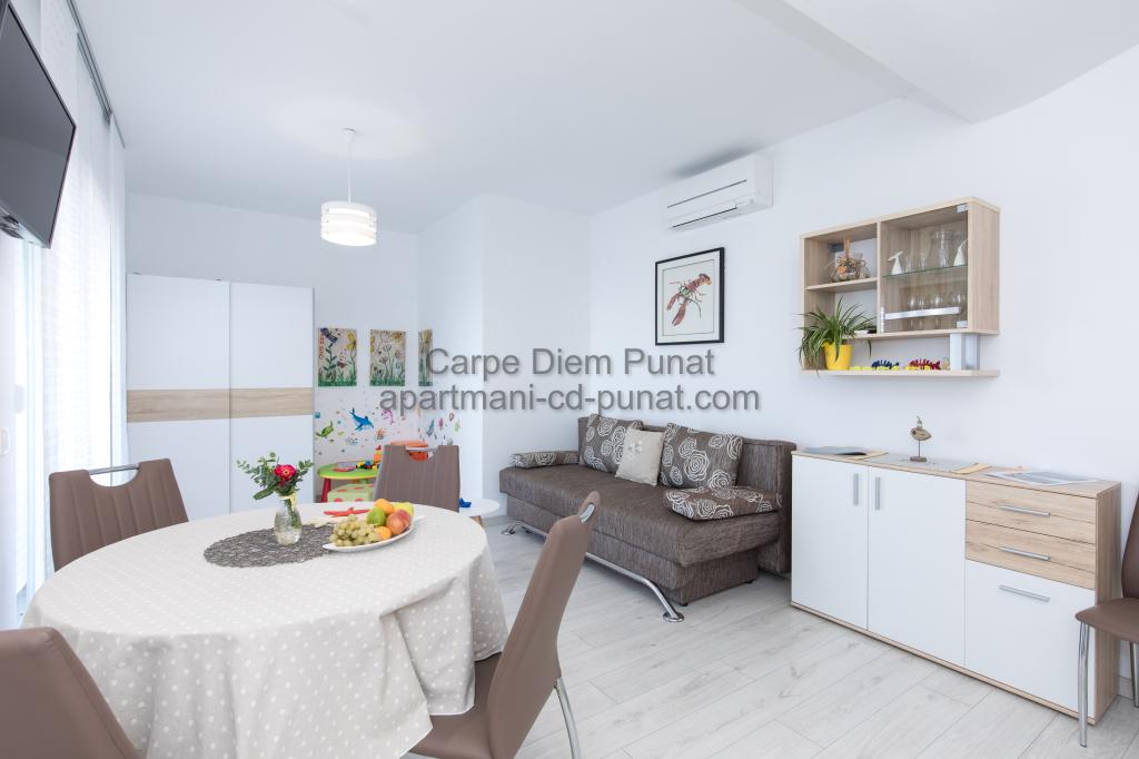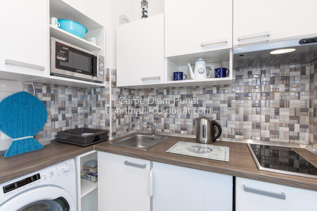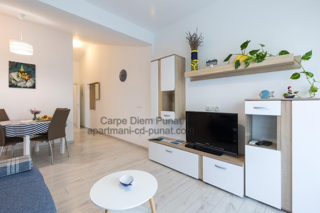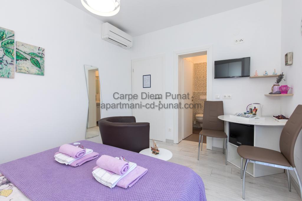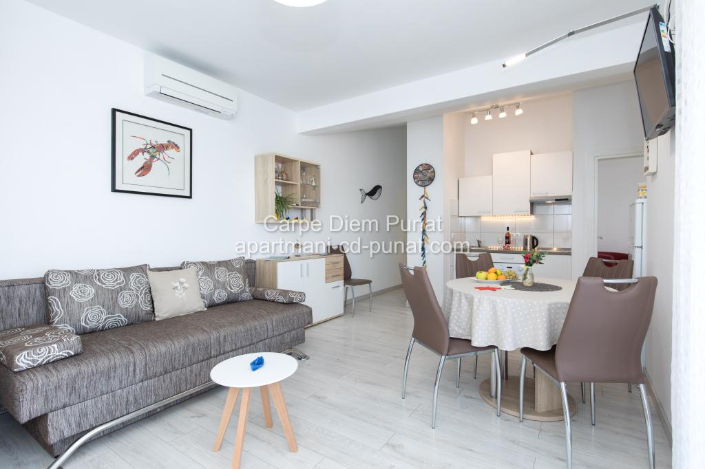 Carpe Diem Apartamentele sunt situate în satul Punat aproape de plajele frumoase Punat. Va oferim doua apartamente si o camera - capacitatea maximă totală de 12 de persoane. Apartamentele sunt situate la primul etaj al unei case noi. Inclusiv ustensile complete de bucătărie și tacâmuri, frigider, cuptor electric, cuptor cu microunde, filtru de cafea. De asemenea, apartamentele sunt dotate cu lenjerie de pat și prosoape. Pretul include parcare, Wi-Fi și aer condiționat în toate camerele. La plajă aveți 40m sau 1 minut. O plimbare de 15 minute veți ajunge la centrul de Punat, unde veți găsi magazine, farmacie, oficiu postal, banca, restaurante, brutării, pește și altele asemenea. În apropierea casei este un zgomot restaurant.