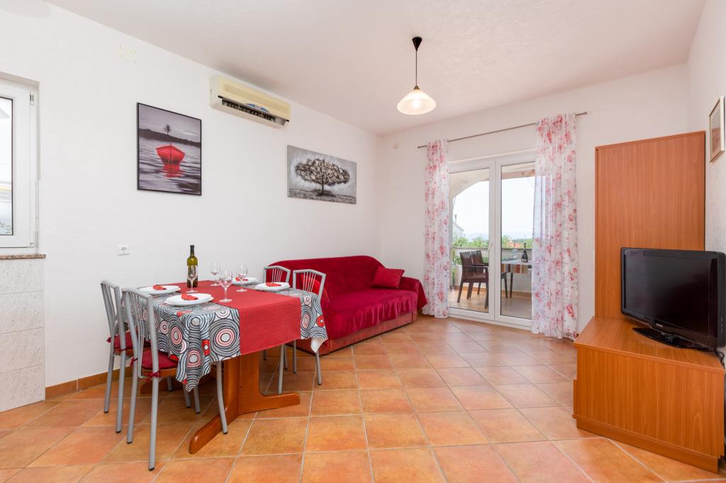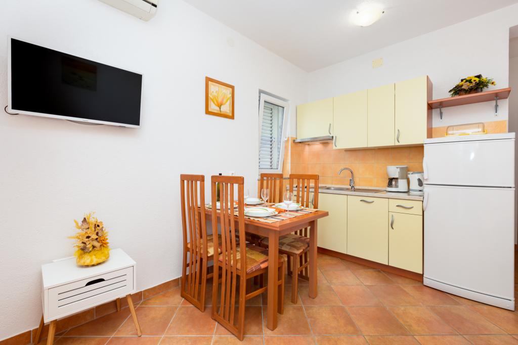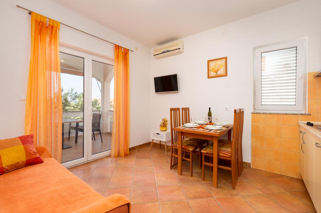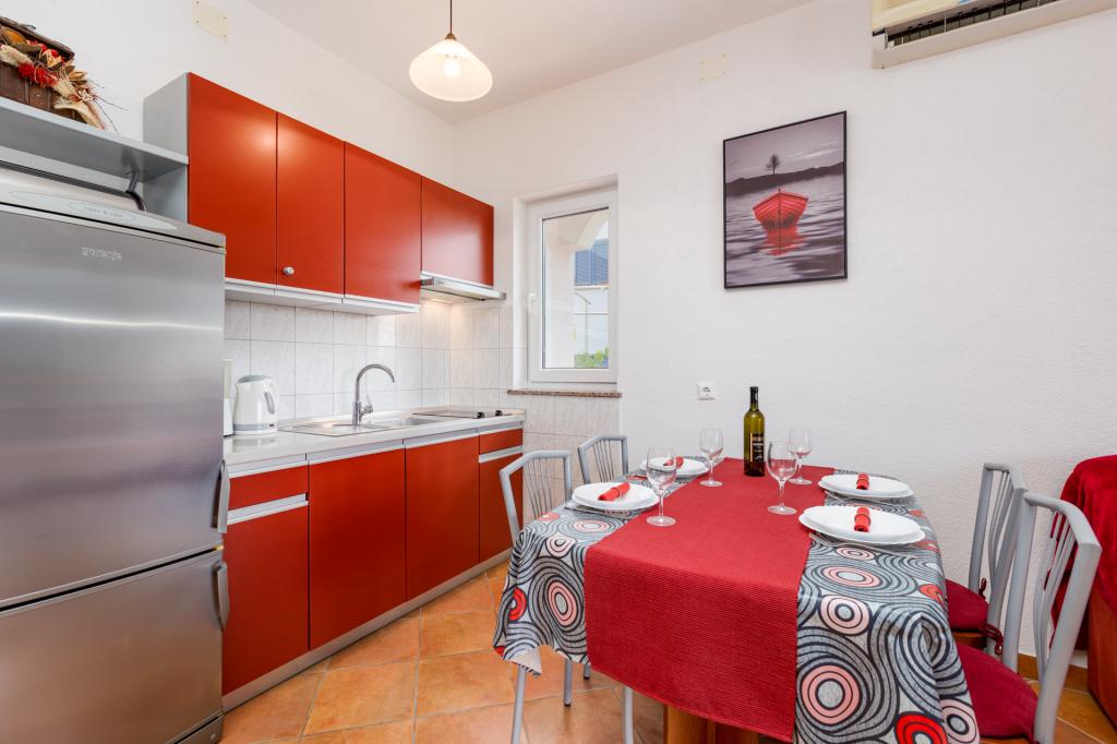 În micul oraș de coastă de Punat, în împrejurimile frumoase de măslini și smochini, se află casa familiei noastre, cu două apartamente moderne, la parter. Fiecare apartament are doua dormitoare separate pentru a găzdui patru persoane, baie cu duș, bucătărie și cameră de zi cu o canapea extensibilă pentru două persoane. Camera de zi are acces la o terasă spațioasă acoperită cu masă și scaune. Apartamentele sunt dotate cu aer condiționat, satelit / TV, lenjerii de pat, mașină de spălat vase, frigider cu congelator, filtru de cafea, vesela si alte ustensile de bucătărie. Pentru locul de parcare în curtea noastră. Bine ai venit!