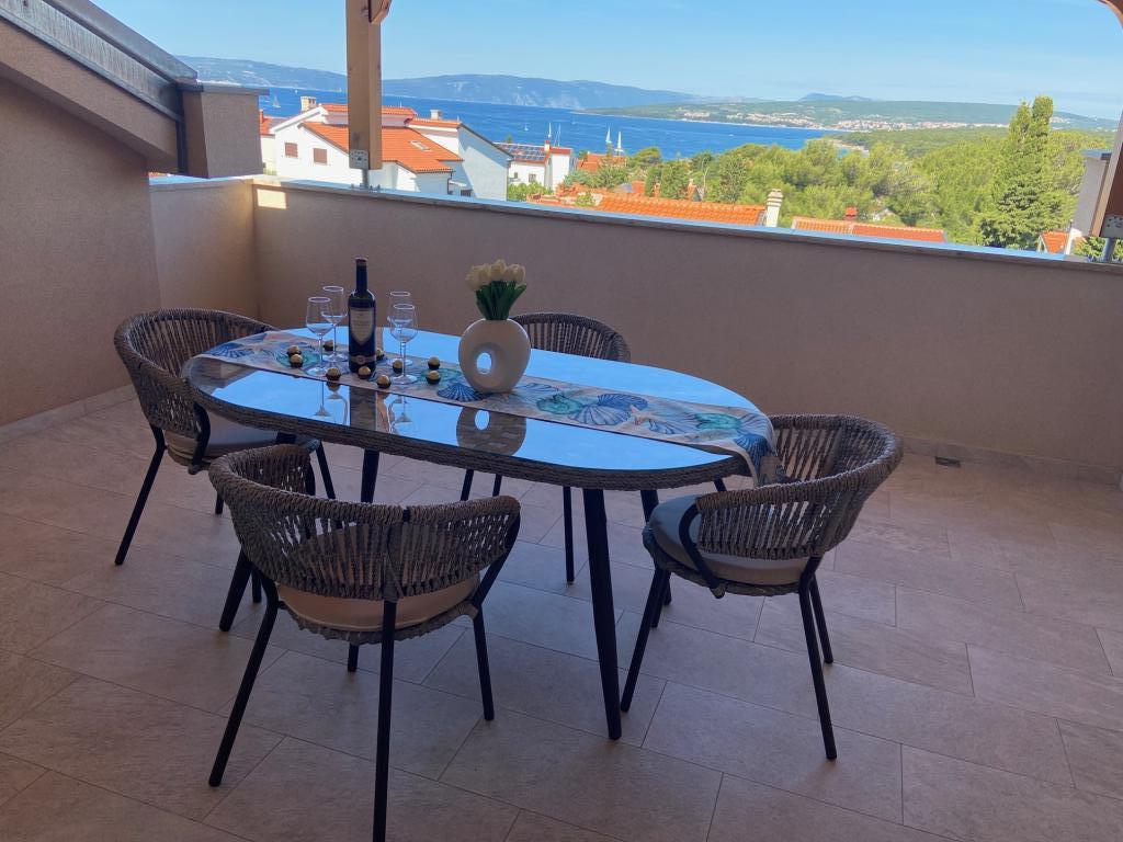 Am inchiriat apartamente in Puntu - insula Krk. Detașată nouă casă, are 4 apartamente. 2 mari pentru 4 2 persoane. Unul la mansardă cu vedere la mare și un parter mare. 2 apartamente mici pentru 2 persoane, unul la mansardă cu vedere la mare și unul la parter. Apartamentele mari au două dormitoare, o baie cu duș și o bucătărie cu o zonă de luat masa și o terasă mare. Apartamentele mici au un dormitor, o baie cu duș, o bucătărie cu o zonă de luat masa și o terasă Apartamentele sunt dotate cu aer condiționat, TV prin satelit, mașină de spălat vase, mașină de spălat (comună), frigider cu congelator, cuptor, plită ceramică, cuptor cu microunde ... În fața casei există un grătar pe lemn. Loc de parcare proprie. Internet.