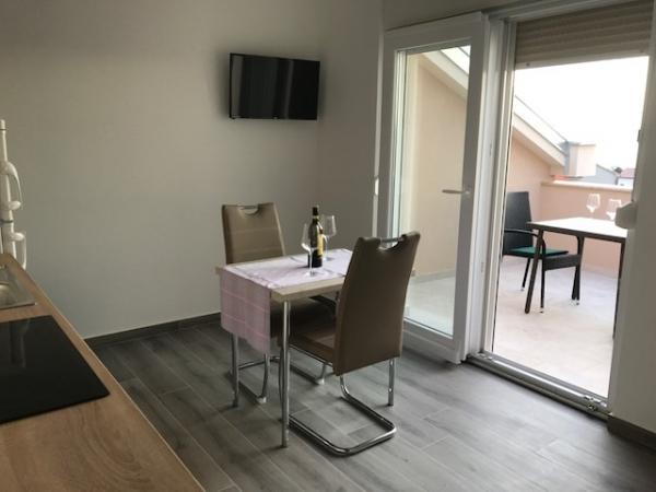 Apartamentul și întreaga casă sunt foarte îngrijite. Totul este nou și curat, apartamentul are tot ce ai nevoie, de la vase până la săpun de mână, perie, mătură ... Terasa este super practică. Plaja și centrul orașului sunt în apropiere. De asemenea, am avut un loc unde să aranjați bicicletele. Doamna. Mirjana este minunată, ne-a găzduit frumos.