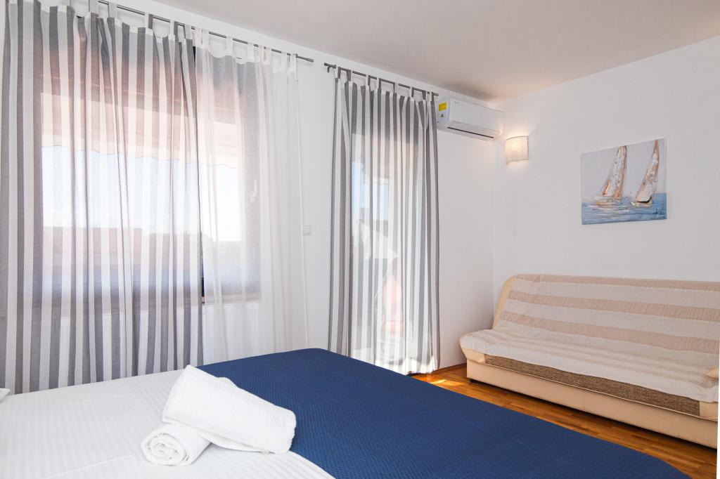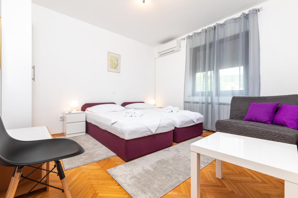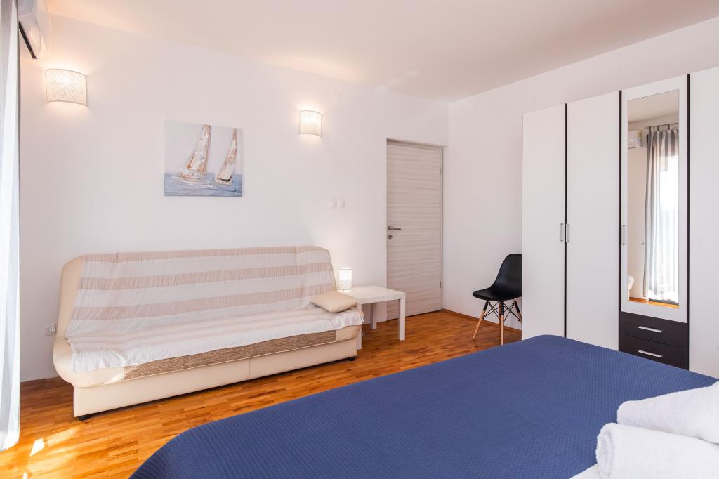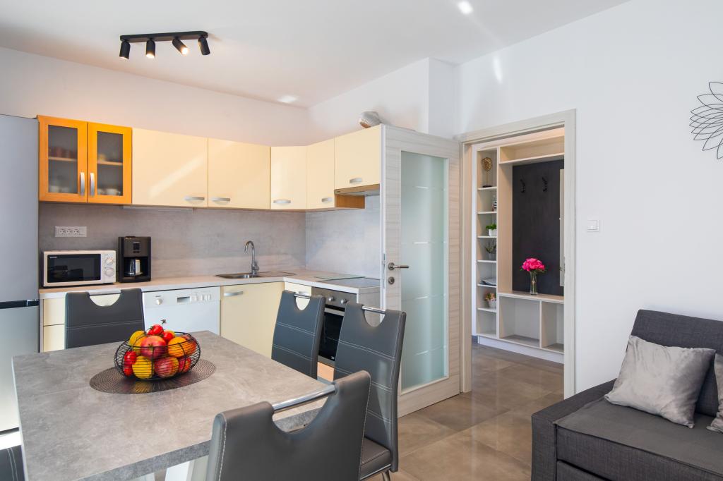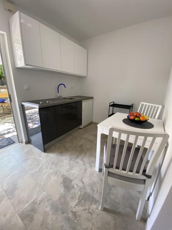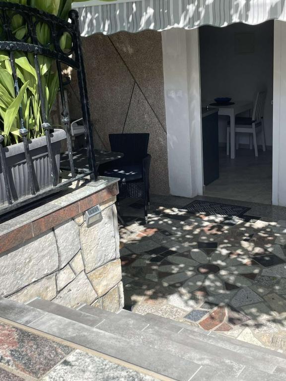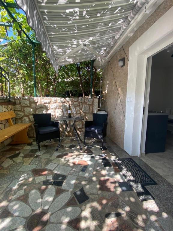 Studioul este înconjurat de verdeață și este o adevărată oază de liniște: flori mediteraneene, viță de vie, măslini... Am fost încântat de smochinele și prunele pe care le-am cules și le-am mâncat eu însumi, iar în grădina de lângă casă sunt și roșii, castraveți și dovlecei, și totul este permis a fi cules și folosit. O grădină pentru zece persoane! Studioul este exact potrivit pentru două persoane și are tot ce ai nevoie. Totul este foarte curat și ordonat, probabil totul este nou. Patul este foarte confortabil și este plăcut să dormi. Mașina poate fi parcată în curte. Proprietarii sunt extrem de amabili, m-au invitat la cina pe care au pregătit-o pe grătarul de lângă piscină. Piscina este pentru oaspeții studioului și ai apartamentului mare și are jacuzzi, poți înota la orice oră din zi. Punat are evenimente estivale grozave, așa că are o viață de noapte bună, mi-a plăcut Beat on the Sea, iar la aproximativ douăzeci de minute distanță se află clubul Diamond pentru cei care caută o distracție puțin mai intensă. Plaja este la câteva minute de mers pe jos sub casă, dar proprietarii mi-au arătat una puțin mai departe, care este frumoasă, mai liniștită și mai frumoasă, doar pentru plăcere. Per total, sunt încântat de această cazare, de verdeață, de liniște, de viața de noapte și de proprietarii minunați! Recomandările mele!