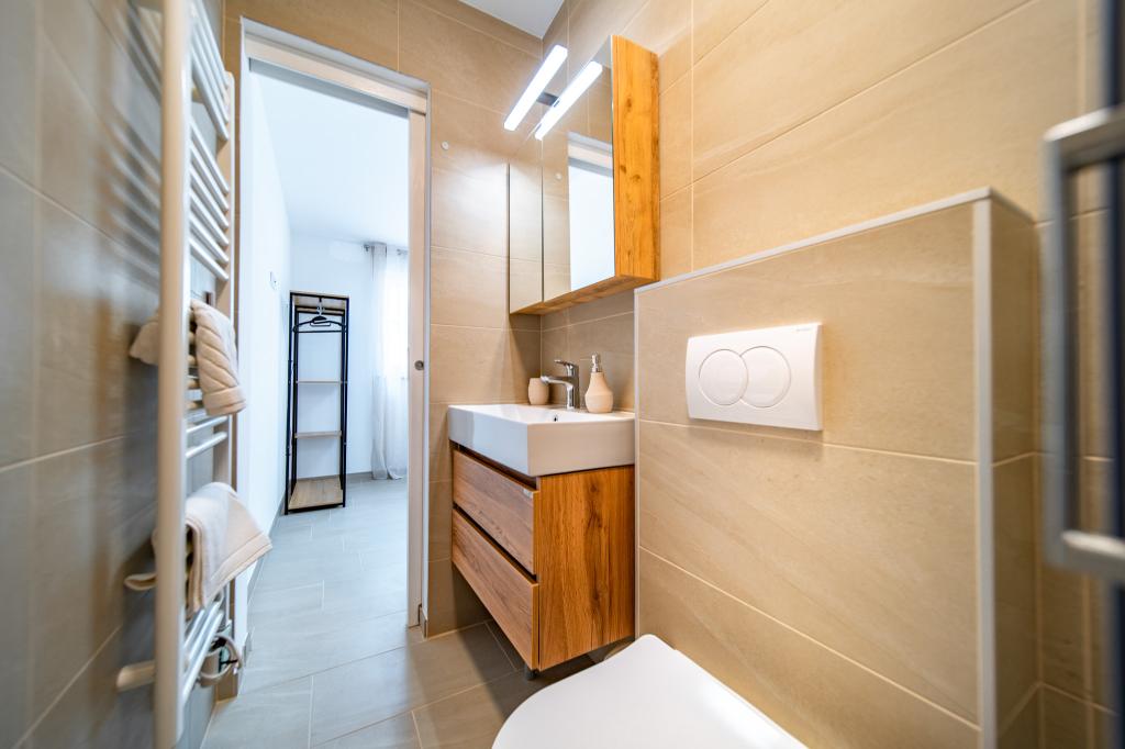 Apartamentul este curat, ordonat si intretinut regulat, bucatarie excelent utilata, baie foarte curata, aer conditionat raceste tot apartamentul in aproximativ 30 min. Locația este excelentă dacă doriți să faceți turul insulei Rab cu mașina, deoarece este situată în partea centrală a insulei, astfel încât veți ajunge foarte repede în fiecare loc (în cel mult 10 minute). Serviciul gazdei este de asemenea remarcabil, dna. Ljuba și Sandra sunt cu adevărat plăcute și amabile, discrete, vă respectă liniștea și intimitatea. Dacă vii cu un animal de companie, plaja pentru câini este la doar 3 minute. la câțiva pași de apartament.
