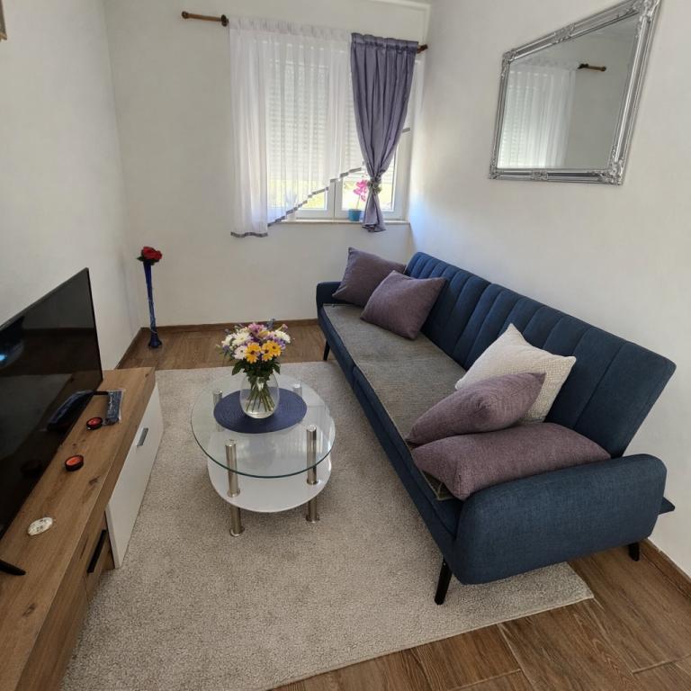 Apartamentele "Kirinec" sunt situate în Banjol, pe insula Rab. Casa este situată într-o pădure de pini, pe un deal cu vedere frumoasă la mare. Dacă chiar îți dorești o vacanță adevărată, fără zgomot, stres și aglomerație, atunci acesta este locul ideal pentru tine.