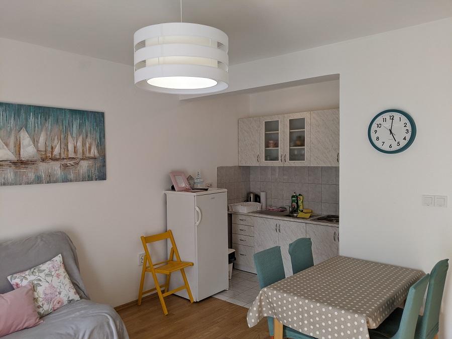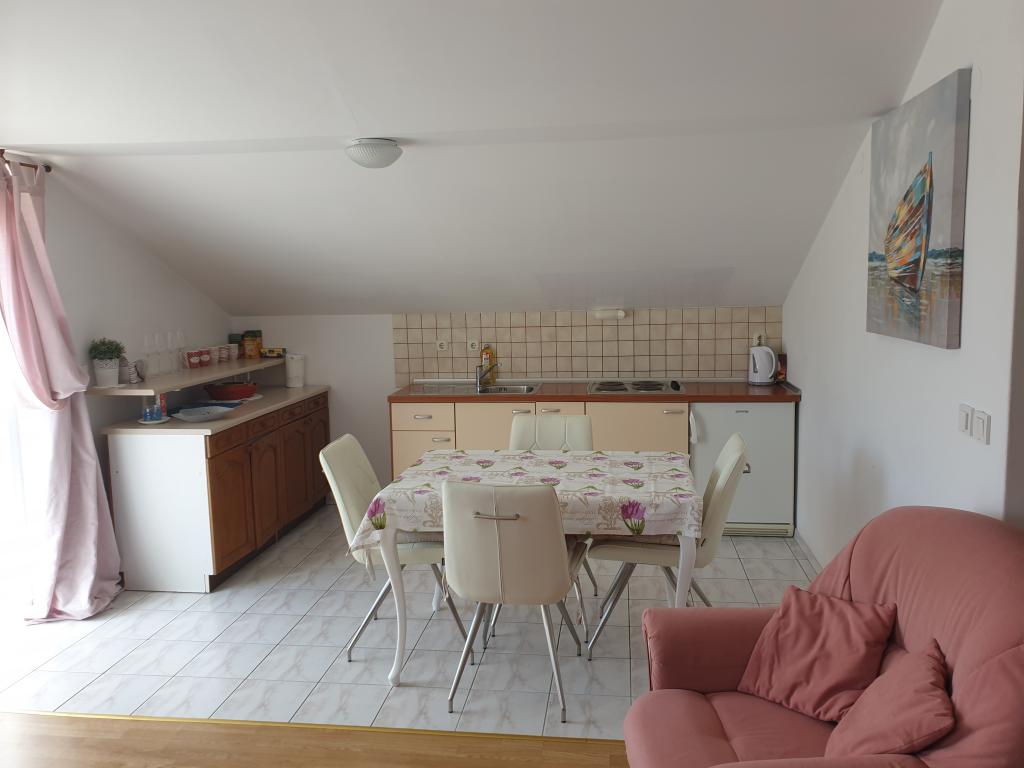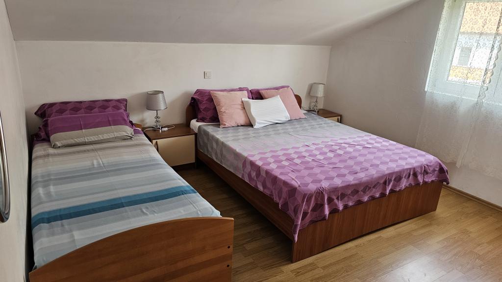 Apartamentul este destul de mare pentru o familie de patru persoane, îngrijite. Terasa cu vedere la mare. Personalul este foarte amabil, ne-au spus multe despre frumoasa insulă Rab, cea mai mare parte pe care am văzut-o. Recomandăm apartamentul tuturor, lângă o plajă de nisip excelentă, extrem de potrivită pentru copiii mici. O vacanță de dorit!