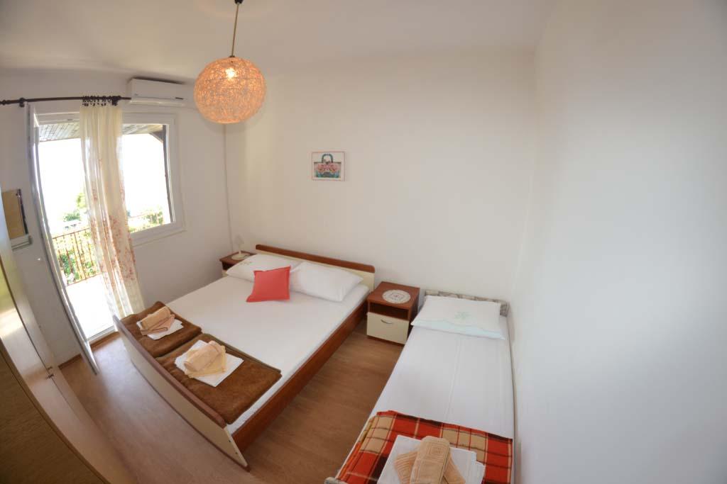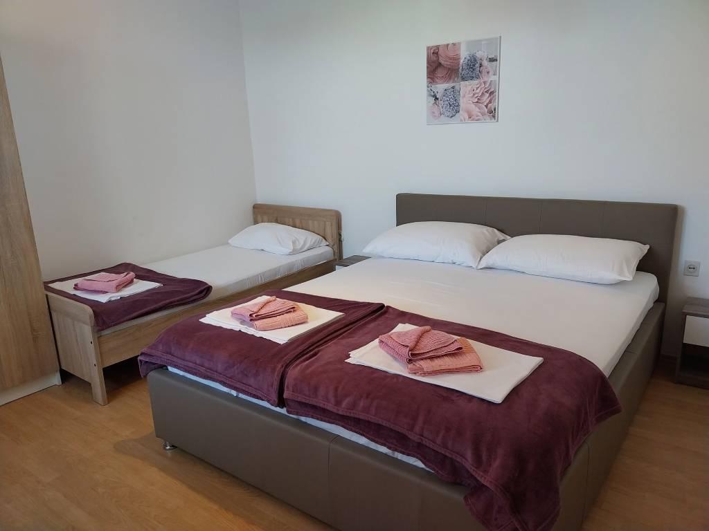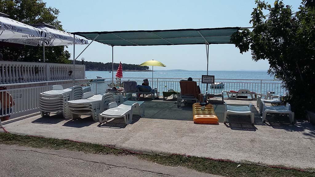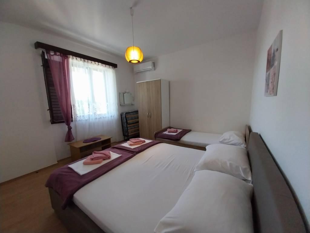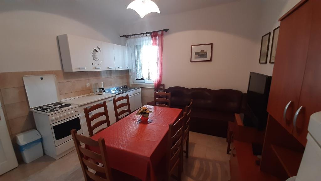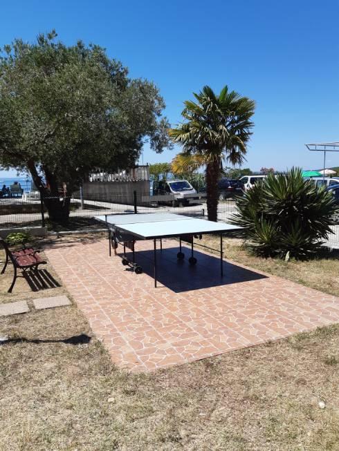 Ne aflăm în apropierea golfului Padova III, pe insula Rab. Oferim oaspeților noștri cazare în apartamente situate într-o casă la aproximativ zece metri de mare. Deasupra plajei cu nisip se află terasa noastră privată cu șezlonguri, iar de la balcoanele tuturor apartamentelor se deschid o priveliște frumoasă asupra mării. În curtea interioară de sub măslini, oaspeții au la dispoziție un grătar mare și o masă, precum și leagăne și un tobogan pentru copii, precum și o masă de tenis de masă. Așteptăm cu nerăbdare sosirea dumneavoastră și vă dorim o ședere plăcută.