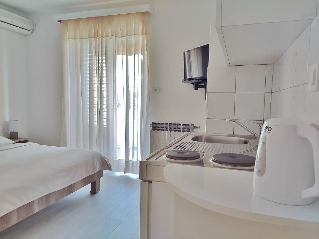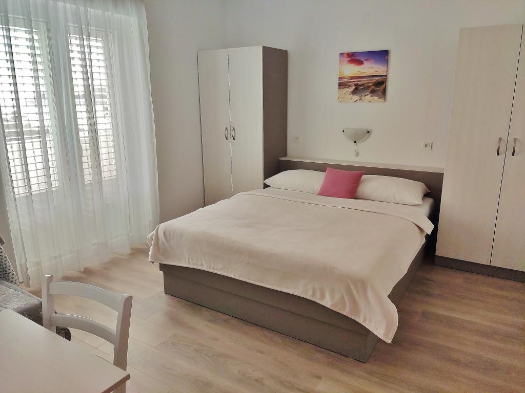 Apartamentele „Padovan 209”, Banjol 209, Rab sunt situate în golful „I Padova”, vizavi de orașul vechi al orașului Rab. Cea mai apropiată plajă se află la 3 minute de mers pe jos, iar următoarele se întind de-a lungul promenadei. Este la aproximativ 10 minute de centru și la 15 minute de orașul vechi. Fiecare apartament are 1 loc de parcare disponibil. Apartamentele cu două camere au 2 băi. Vom fi bucuroși să vă găzduim. Bine ati venit!