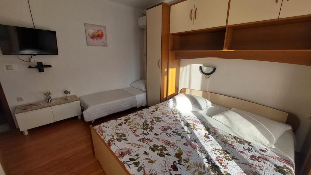 Totul este perfect! Apartament îngrijit, mic balcon excelent pentru 2 persoane. Parcare la umbră. Magazin și panificație la 2 minute de mers pe jos. Doamna Sanja și mama ei, foarte amabile, am primit roșii și ardei de casă de 2 ori. La centru, la 20-30 de minute de mers pe jos. Vă recomand o plimbare pentru a ajunge acolo și întoarcere cu barca pentru aproximativ 15 kuna de persoană la Marina 3 și de acolo încă 2 minute de mers pe jos până la apartament. Absolut nimic de reproșat! Salutari