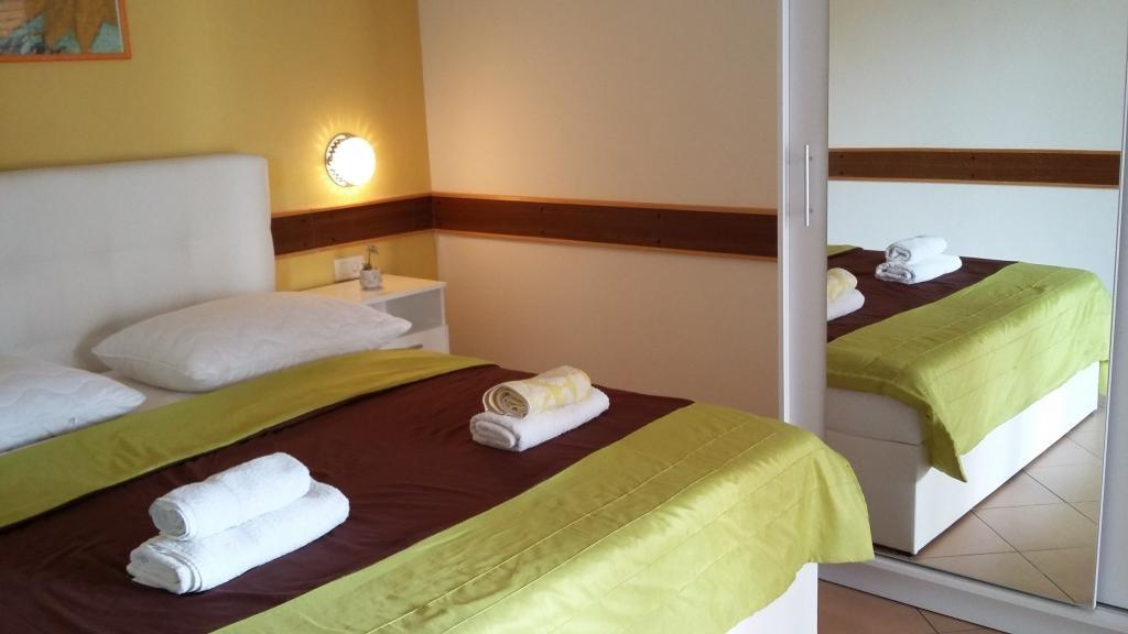 Apartamentele Zlata sunt situate în imediata vecinătate a orașului Rab, într-o parte liniștită a insulei numită Palit, într-o locație atractivă sub parcul orașului Komrčar și în imediata vecinătate a plajei orașului. De acolo, taxiurile vă duc în peninsula Frkanja, cu multe plaje și golfuri mediteraneene frumoase și intime, motiv pentru care este numită „Insula Iubirii”. Promenada de-a lungul mării vă duce în orașul vechi în 10 minute, precum și în partea nouă a orașului. Avem peste 30 de ani de experiență în închirierea de apartamente. Așteptăm cu nerăbdare fiecare turist. Cea mai mare parte a casei este opera proprietarului însuși, care a acordat o atenție deosebită detaliilor din piatră (pereții exteriori ai casei, fântâna etc.). Terasele mari cu vedere la verdeața amenajată a grădinii sunt, de asemenea, speciale. În curtea casei există o parcare care poate fi închisă.