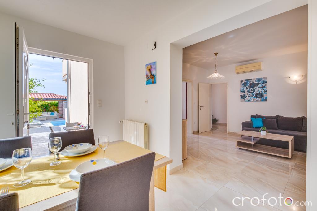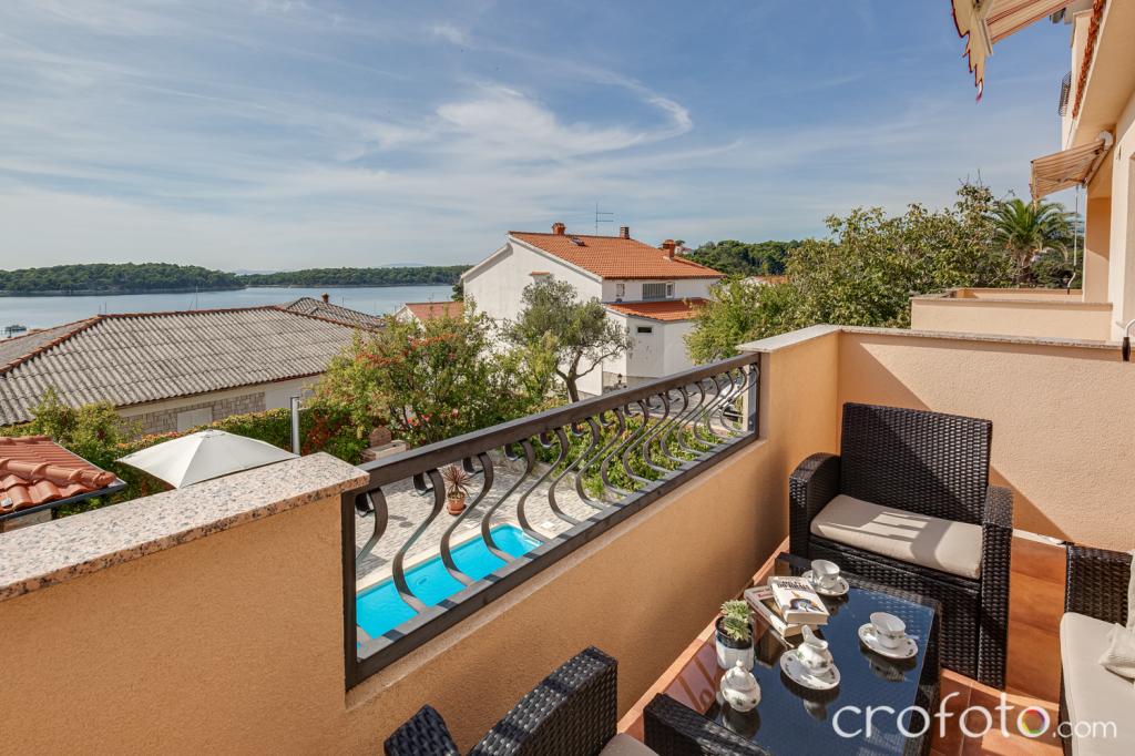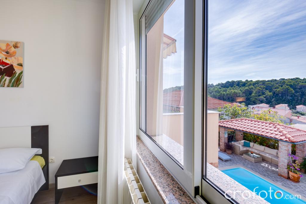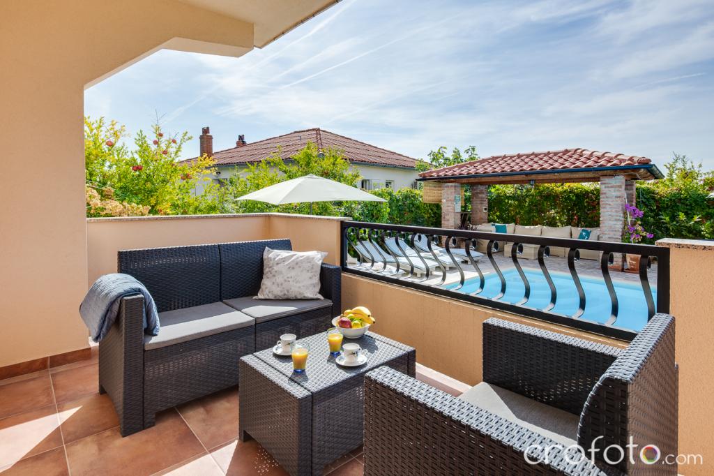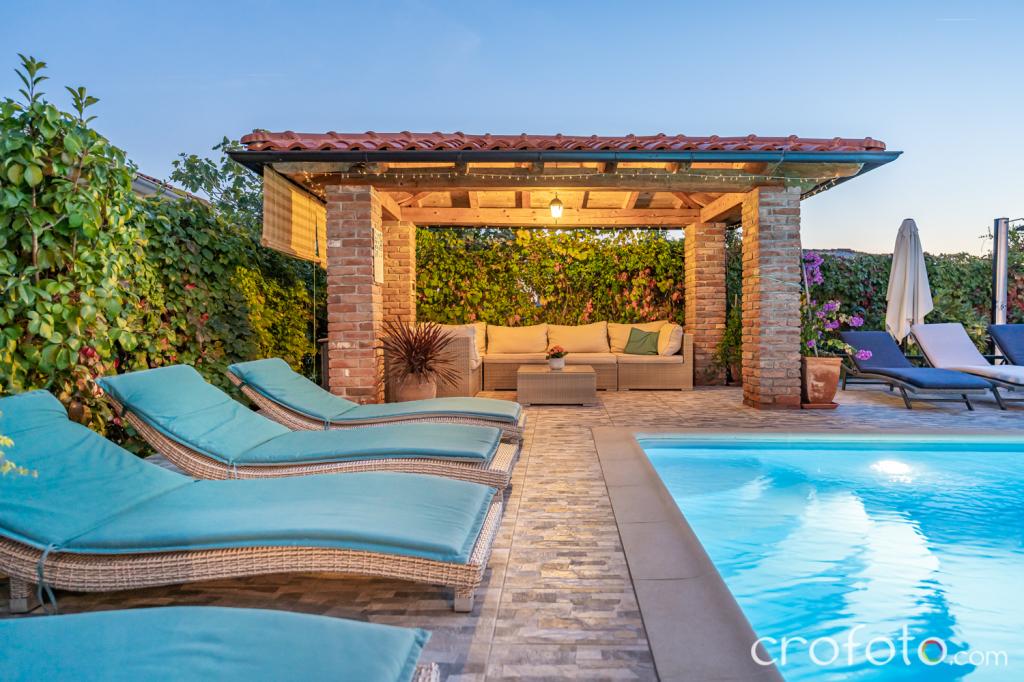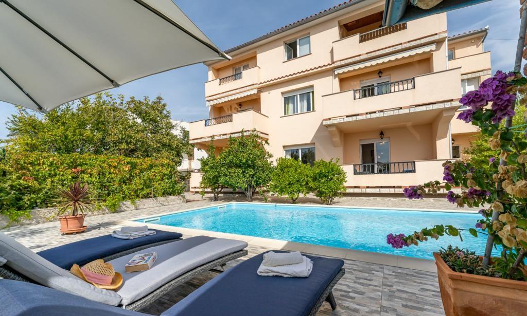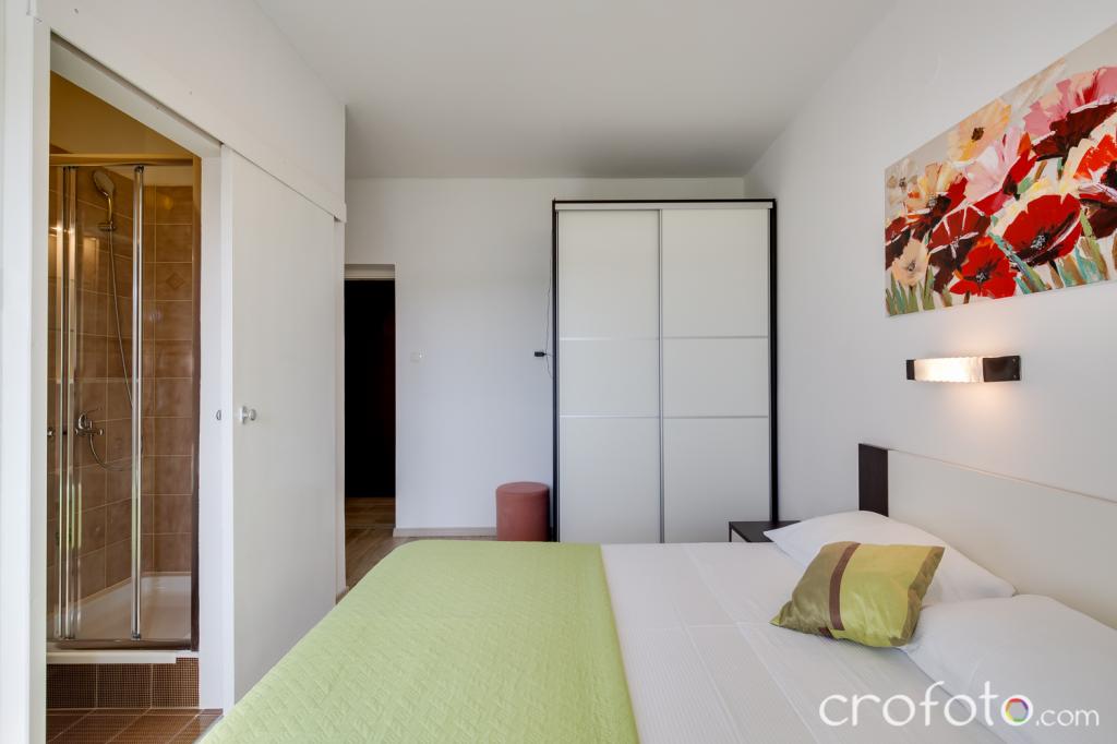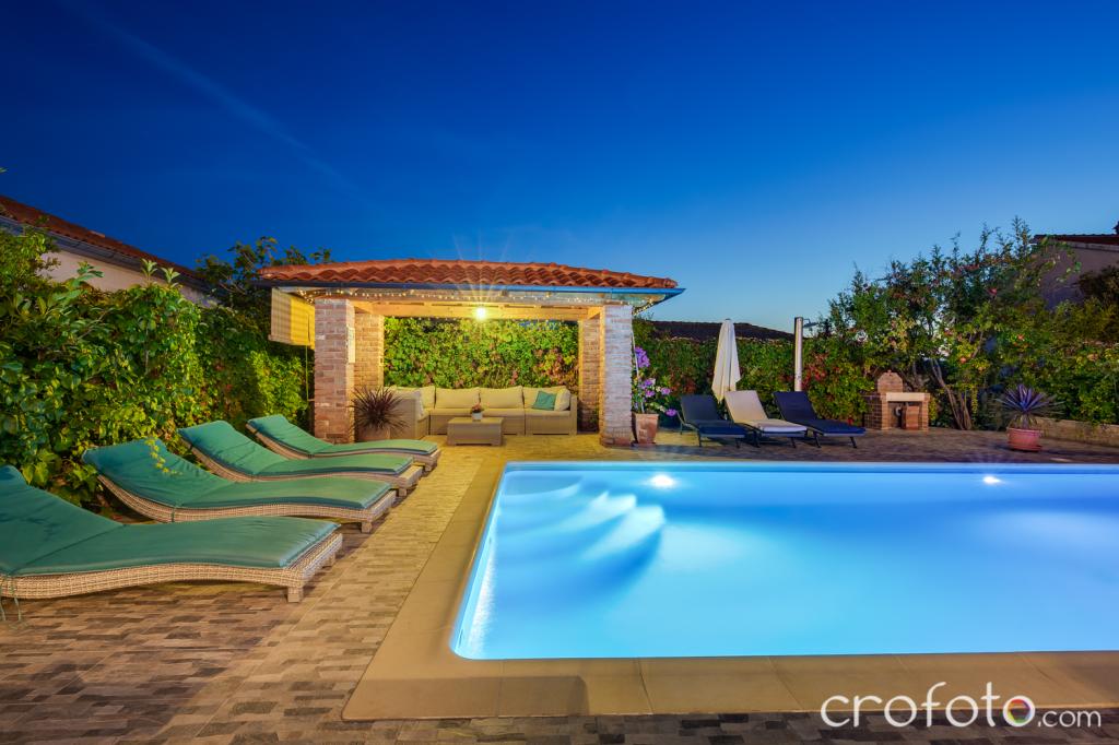 Casa APARTAMENTE JURIĆ are o locație excelentă, aproape de centru și de cele mai renumite restaurante, aproape de mare, aproape de parc. Ceea ce câștigă cu adevărat este departe de aglomerație, într-o locație liniștită, cu piscină proprie și grădină cu foișor separat cu șemineu și o masă mare, pe care am pus-o la dispoziția dragilor noștri oaspeți. Zonă plăcut amenajată și mobilată în jurul piscinei, cu locuri confortabile la umbra unui foișor intim, șezlonguri confortabile, înconjurată de verdeață înaltă. În grădină, măslini, ierburi mediteraneene, plante ornamentale și flori conferă o atmosferă specială. Atmosfera este foarte plăcută, potrivită pentru o vacanță liniștită și relaxare.