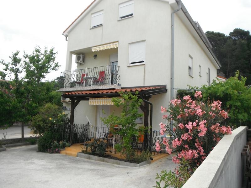 Casa este o clădire independentă și este situată într-o zonă liniștită a orașului Rab, lângă parcul Komrčar, la doar 150 m de plaja orașului, a cărei promenadă duce la orașul vechi Rab. Imobilul se afla la 10 minute de mers pe jos de centru si de toate facilitatile sale, precum magazine, o clinica, o farmacie, o piata, o statie de autobuz, restaurante, terenuri de sport... Cel mai apropiat restaurant este la 50 m de casa. În fiecare zi, bărcile circulă de la plaja orașului până la insula vecină Frkanj, unde turiștii se pot bucura de plaje sălbatice și izolate. Imobilul este format din 4 apartamente, dintre care doua garsoniere, un apartament cu un dormitor si unul cu doua dormitoare. Toate apartamentele sunt complet și modern echipate și au un balcon cu scaune, Wi-Fi gratuit, un loc de parcare gratuit per apartament și un grătar comun lângă casă.