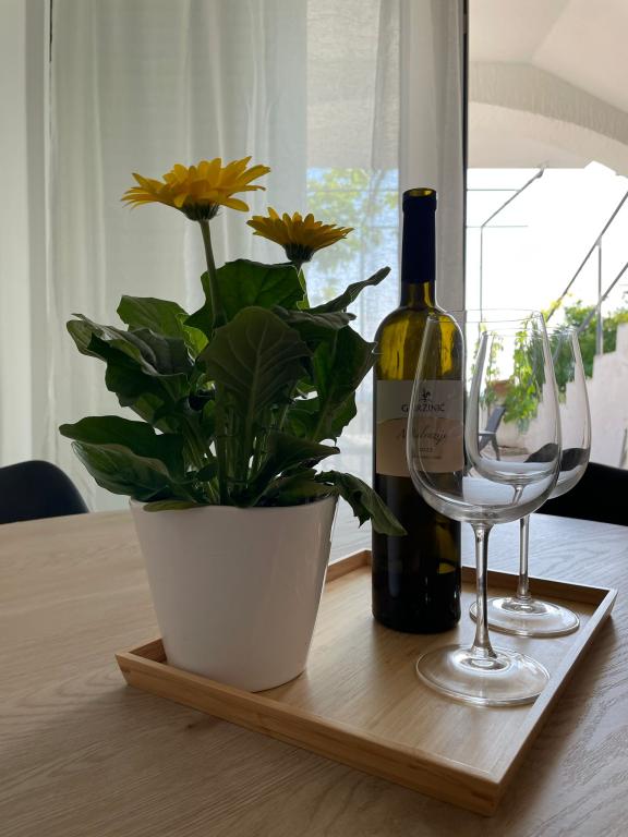 Apartamente și camere confortabile, frumos decorate, chiar pe mare, într-o locație liniștită, cu vedere frumoasă la mare. La câteva minute de multe plaje și la 10 minute de mers pe jos de-a lungul mării din orașul vechi Rab. Apartamentele și camerele noastre sunt la aproximativ 1 kilometru de orașul vechi Rab, magazine, medici și farmacii. Pretul include taxa turistica, folosirea lenjeriei de pat si a prosoapelor. Vino să-ți petreci vacanța în apartamentul nostru. Bun venit!