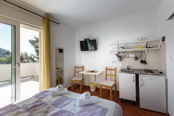 Citește mai mult Unități de cazarePentru confirmarea rezervarii este necesara plata sumei de 1 noapte ca avans. În ziua sosirii, apartamentul și camera pot fi introduse după ora 12, iar în ziua plecării, apartamentul și camera trebuie eliberate până la ora 10. Apartamentele A2 2, A2 1 (a) și A2 1 (b) sunt situate într-o altă clădire, la 400 m distanță de mare.
