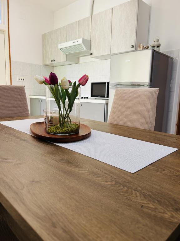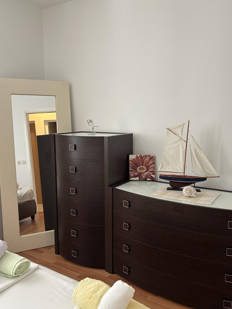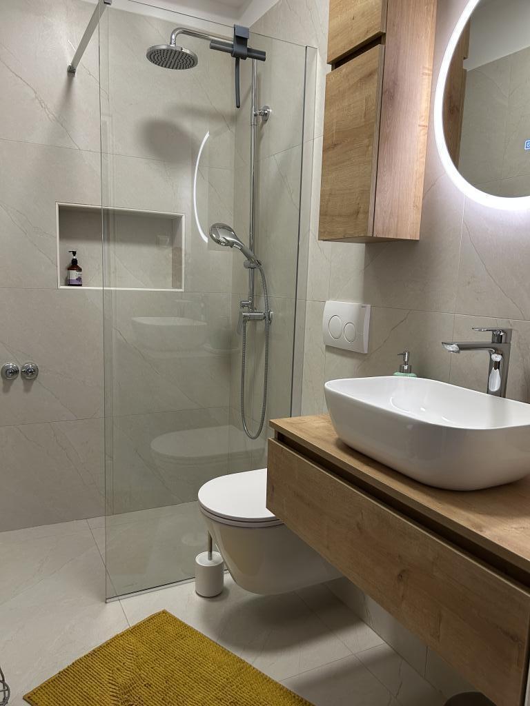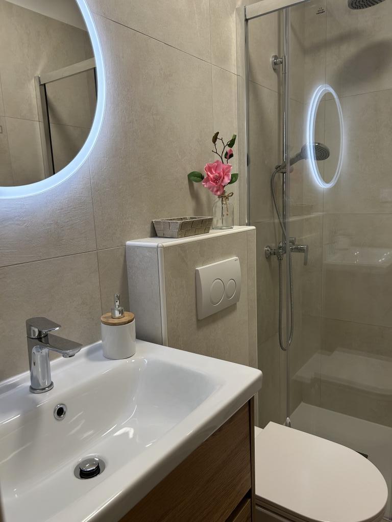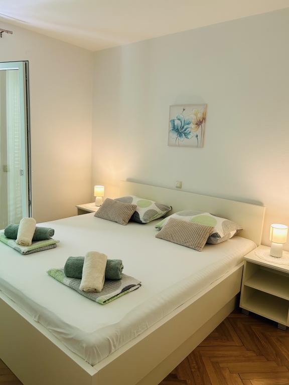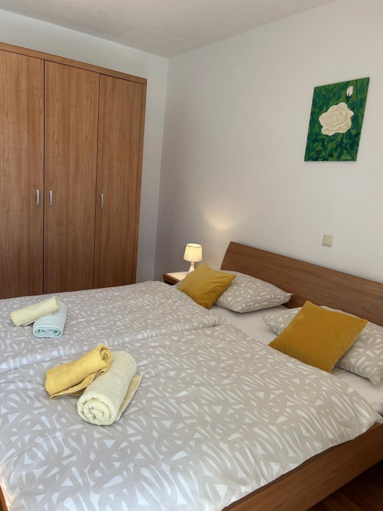 Apartamente dotate modern, într-un mediu liniştit. Apartamentele sunt situate la parter și la primul etaj. Acestea conțin un living, camere cu pat dublu, o bucătărie cu toate accesoriile necesare, o baie și un balcon și Wi-Fi gratuit. În sfera facilității există parcare gratuită, și posibilitatea de a folosi un grătar. Un magazin alimentar, o cafenea și un salon de coafură sunt situate la 300 de metri de clădire, iar alte facilități precum restaurant, ambulator, farmacie etc. sunt la 5 minute de mers cu mașina. Cea mai apropiată plajă cu pietriș este la 700 de metri, iar dacă totuși vă decideți să explorați puțin mai mult, peninsula Frkanj, care este plină de golfuri și plaje, se află la 5 minute de mers cu mașina. Orașul vechi Rab este la 20 de minute de mers pe jos de-a lungul mării sau la 5 minute cu mașina.