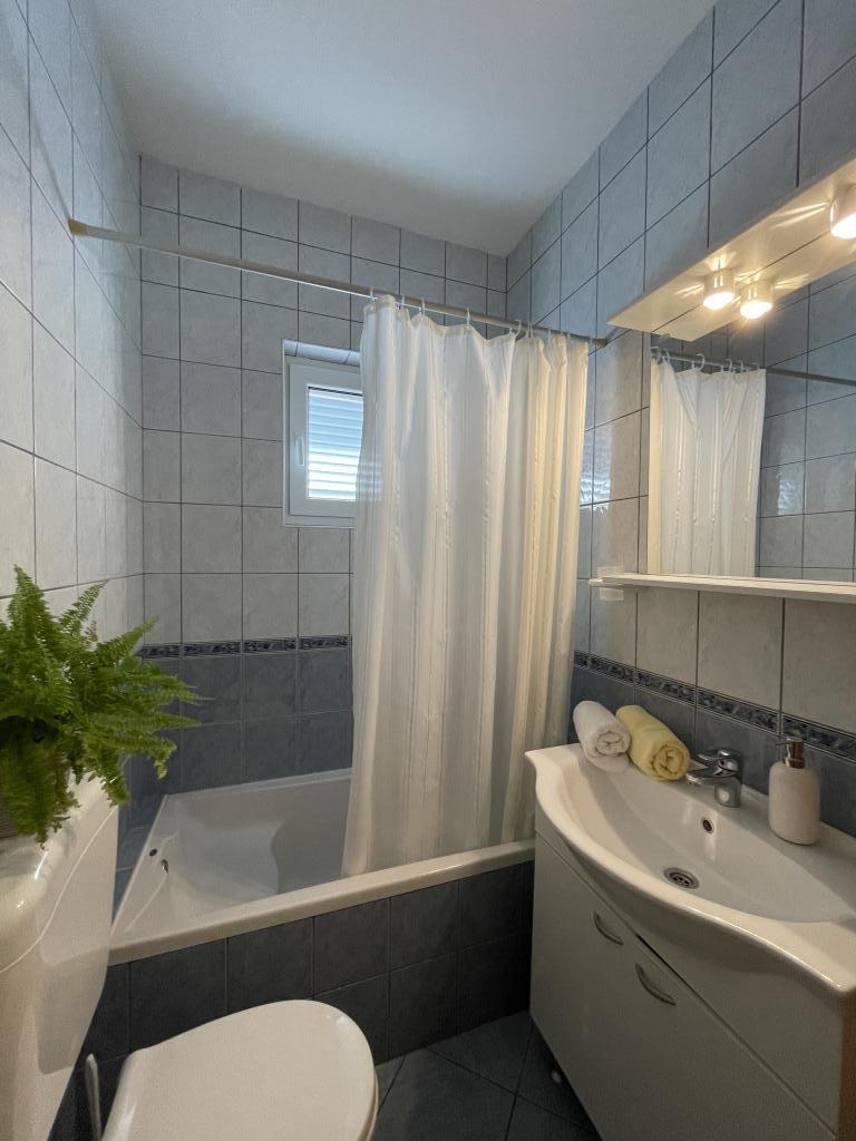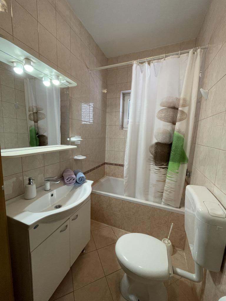 Apartamentele sunt construite recent, într-o zonă liniștită din Palit. Pe coasta însăși trebuie să fie primul rând. Facilitatea este situată la 10 minute de centru și la 5 minute de mers pe jos de plajă. Restaurante se află la 10 metri până la 200 de metri. Magazinele sunt la 500 de metri. Apartamentele au o suprafață de 50m2, dintre care 25m2 sufragerie cu bucătărie și canapea care poate găzdui un copil de până la 12 ani și care se plătește suplimentar de persoană. Încălzire solară cu apă caldă. Vă rugăm să ne contactați exclusiv prin e-mail!