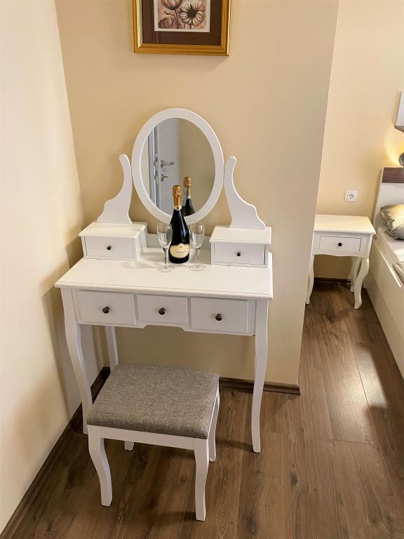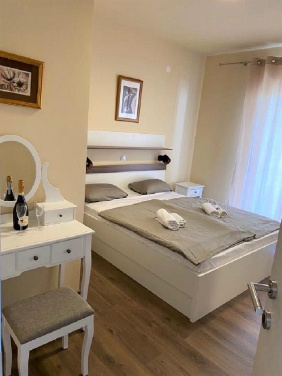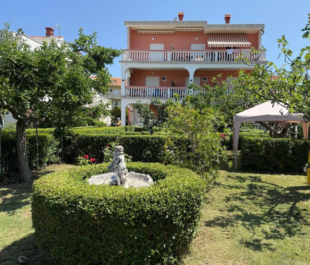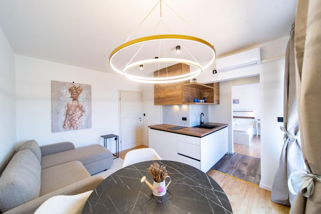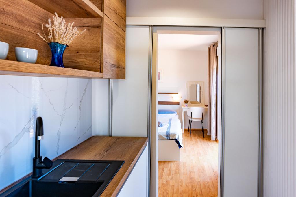 Facilitatea este situată într-o zonă liniștită a insulei Rab, orașul Palit. Deoarece suntem situate în primul rând la mare, toate unitățile, care sunt luxoase și complet echipate, oferă o vedere frumoasă la mare și. golful romantic Frkanj, unde vă puteți bucura de răsărituri și apusuri magice. Casa este situată la doar 50 de metri de plajă și la 150 de metri de centrul orașului Rab, la care se poate ajunge printr-o plimbare plăcută de-a lungul promenadei de lângă mare. Restaurante sunt, de asemenea, situate la câteva minute de mers pe jos de clădire. Clădirea este, de asemenea, decorată cu o grădină frumoasă cu grădină, unde vă veți bucura de aromele mediteraneene pe măsură ce treceți pe lângă mare.