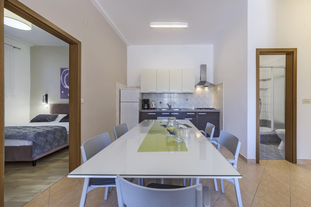 Citește mai mult Unități de cazareCheck-in: 14:00 h Check-out: 09:30 h Animale de companie: 12,00 EUR/zi suplimentar Aer condiționat: 8,00 EUR/zi suplimentar Înregistrare: 5,00 EUR/persoană o singură dată în ziua sosirii Posibilitatea de plată în ziua sosirii sau prin plata în cont, la rezervarea cazării se plătește un avans în valoare de 30% din prețul total. În sezonul de vârf, acceptăm rezervări de sâmbătă până sâmbătă (7, 14, 21 zile).