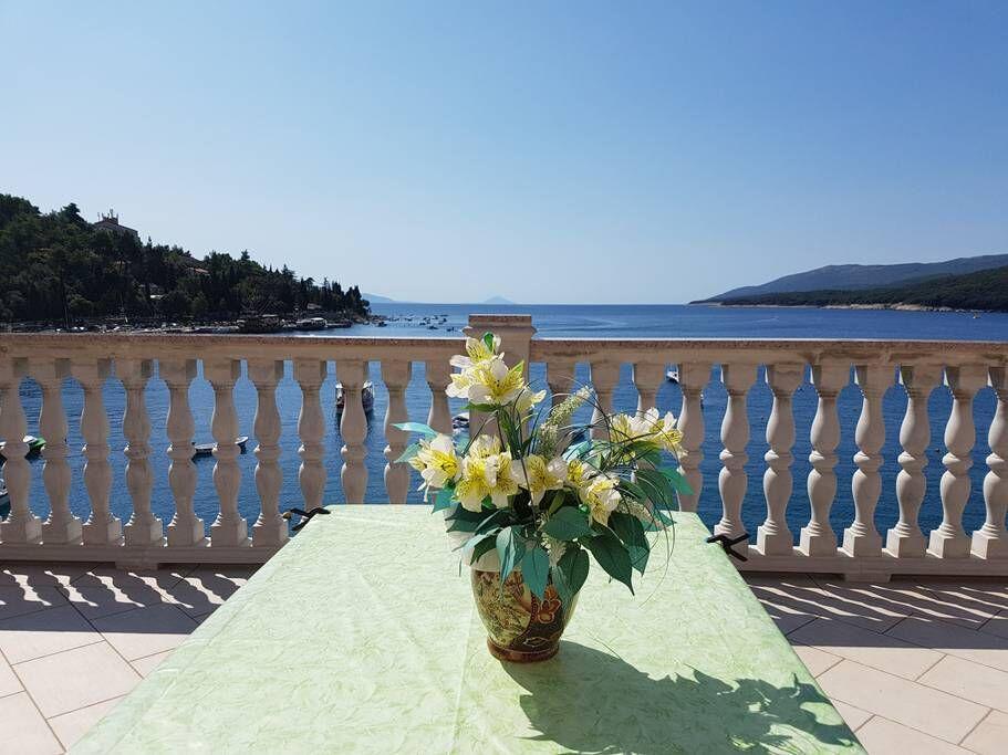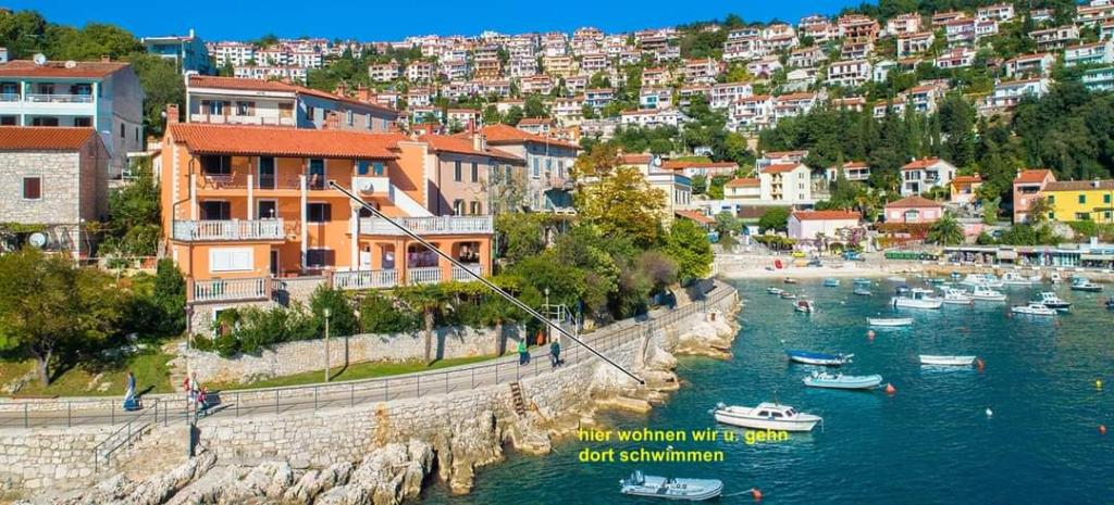 Casa noastră este situată în centrul orașului Rabac, chiar lângă mare, cu o vedere fantastică asupra întregului golf, a insulei Cres și a insulei Unije. Plajele se află la 100 m la stânga și 200 m la dreapta de casă, iar în spatele casei se află restaurante. Magazin, oficiu poștal, farmacie și medic se află la 200 m de casă. Fiecare apartament are vedere la mare și terasă proprie (apartamentele 1 și 2). Apartamentele 3 și 4 au balcon comun.