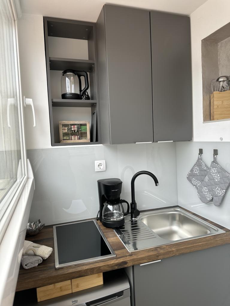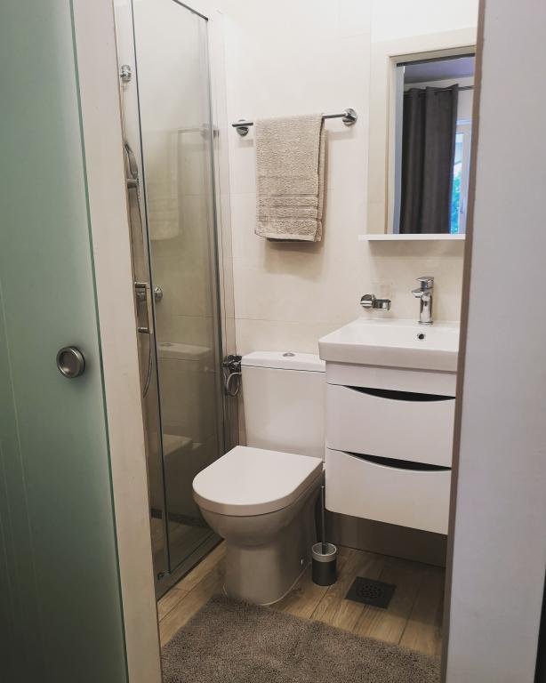Mie și iubitului meu ne-a plăcut foarte mult apartamentul Deluxe, unde am stat 10 zile. Apartamentul este curat și are tot ce ai nevoie dacă îți place să stai acasă și să gătești, să te relaxezi pe canapeaua extensibilă confortabilă și să te uiți la televizorul inteligent sau să te bucuri de priveliștea frumoasă la mare de pe terasă. Am apreciat în mod special faptul că nu i-am auzit pe ceilalți oaspeți sau pe vecini, rulourile din dormitoare și aerul condiționat, care era suficient de puternic pentru a răci întregul apartament. Bucătăria este complet utilată cu vase, oale și tigăi, câteva condimente și are un cuptor, cuptor cu microunde, aparat de cafea, mașină de spălat vase, câteva capsule pentru mașina de spălat vase și detergent de vase. Există, de asemenea, o mașină de spălat rufe, detergent de rufe și balsam de rufe. În baie, primiți geluri de duș, creme de corp și dischete umede. Am fost plăcut surprinși și am simțit că aveam tot ce ne-ar fi putut trebui. Locația este liniștită, chiar lângă mare - perfectă pentru oricine caută pace și liniște. Este situat la aproximativ 15 minute de mers cu mașina de orașul Korčula, unde există o mulțime de opțiuni bune (dar scumpe) pentru a lua cina, a merge într-o excursie de o zi sau pur și simplu pentru a vă bucura de o plimbare prin frumosul oraș vechi. Vântul a fost destul de puternic în timpul șederii noastre, ceea ce a însemnat că nu a fost la fel de cald și a fost plăcut să petrecem timpul afară. În acest apartament, aveți propriile șezlonguri pe terasă, dar există și câteva șezlonguri comune pentru toți oaspeții chiar lângă mare, la umbră. Proprietara, Rina, este foarte prietenoasă și amabilă - am primit chiar și un platou cu mâncare de bun venit, ceea ce a fost foarte apreciat. Recomand cu căldură acest loc; deja vrem să revenim anul viitor!