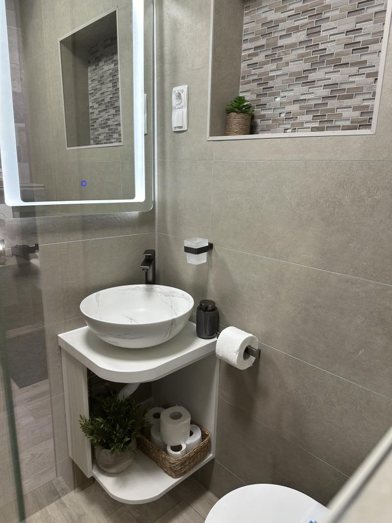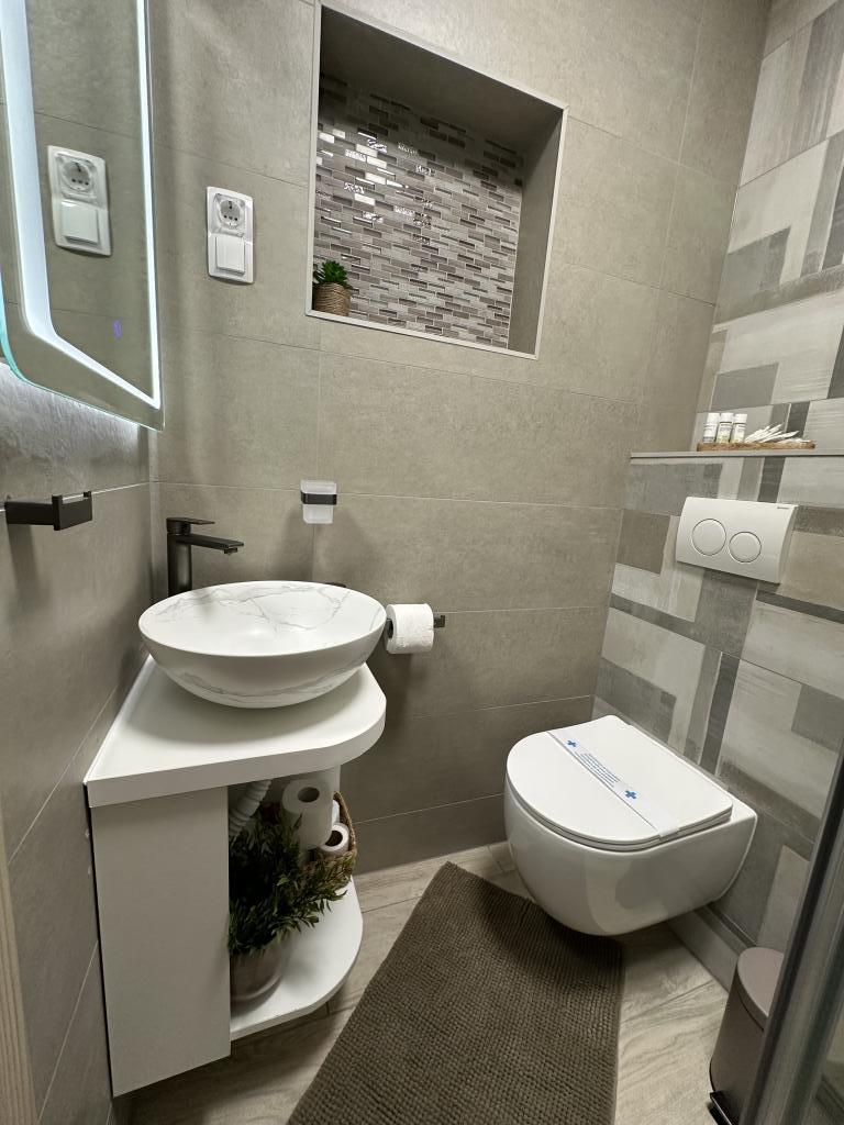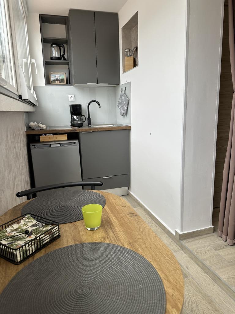 Apartament grozav. Curat si parfumat. Aveți tot ce aveți nevoie în apartament: un blender, un cuptor cu microunde, un storcator... La sosire ne-au așteptat gustări, băuturi și, bineînțeles, prietenoasa și zâmbitoarea doamnă Rina. Locatie linistita, sezlonguri pe plaja. Am fost foarte multumiti.