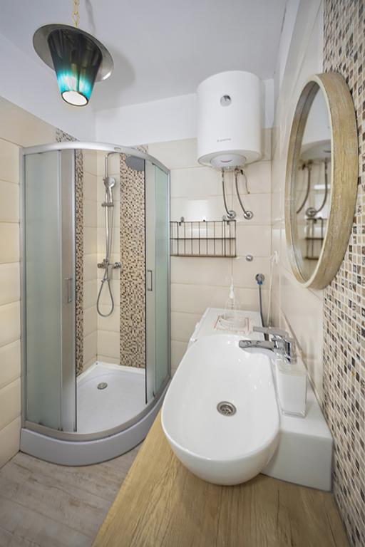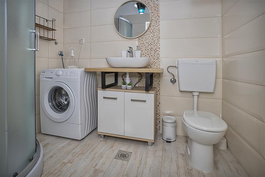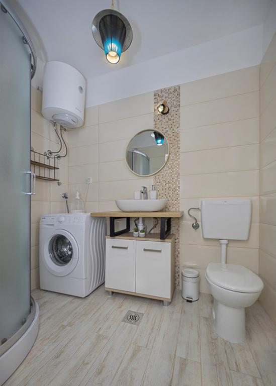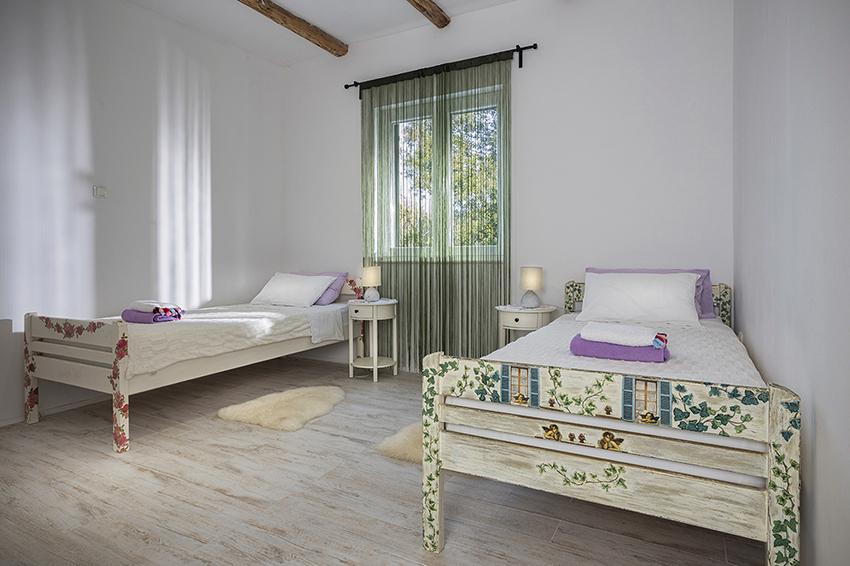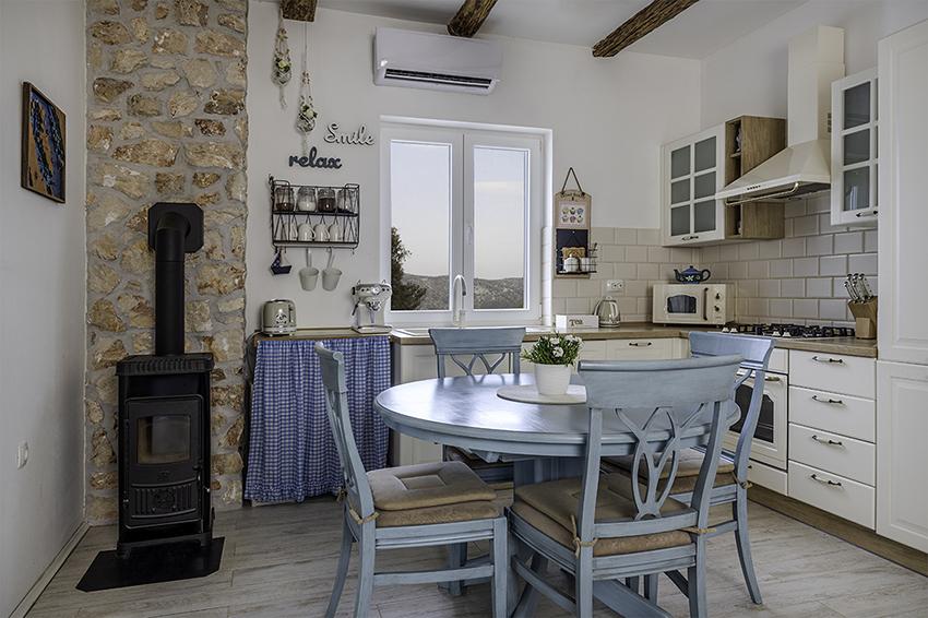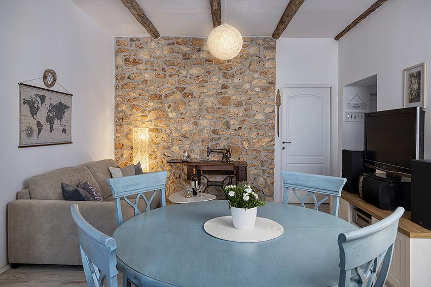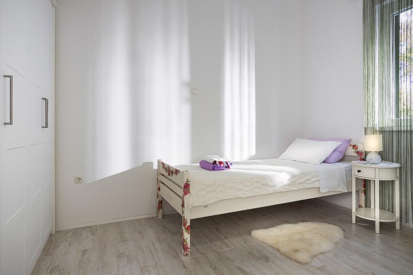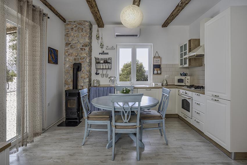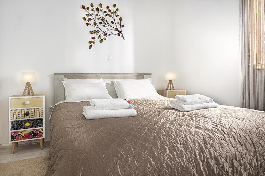 Apartamentul este situat într-o zonă retrasă în partea mai veche a satului, în vârful dealului (75 m până la 82 m deasupra nivelului mării), astfel încât să vă bucurați de liniște și liniște. Se afla la 100 m de cea mai apropiata plaja.Se poate ajunge pe jos pe drumul vechi sau pe jos sau cu masina pe drumul nou. Bucataria este utilata modern si puteti folosi frigiderul cu congelator, cuptor, masina de spalat vase, espressor, toaster, ceainic, cuptor cu microunde. Cladirea dispune de aer conditionat si incalzire in pardoseala. Baia este dotata cu masina de spalat rufe. Apartamentul are doua camere. Una are un pat dublu, iar cealaltă cameră are două paturi de o persoană care pot fi unite. De asemenea, vă puteți bucura de exterior pe terasa spațioasă.