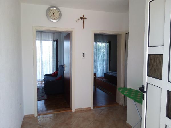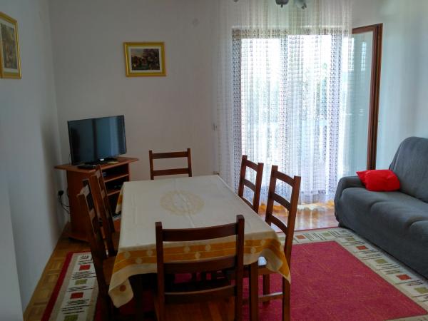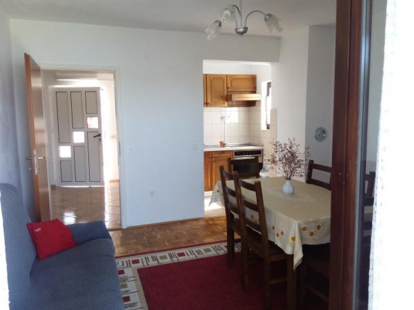 Apartamentul este situat într-o casă de pe primul etaj. Apartamentele au doua dormitoare. Într-un dormitor sunt două paturi de o persoană. Al doilea dormitor are un pat dublu și un alt pat pe partea. Din această cameră și de ieșire la un balcon mare cu vedere la mare și de centrul Miocic Rtina. Camera de zi are un set de canapea (canapea), masa cu 6 scaune și TV. El este, de asemenea, un balcon. Bucataria este conectat cu living și este dotată cu vase și ustensile de gătit pentru 6 persoane. Bucataria este echipat cu gătit el.pločom, cuptor, frigider și fierbător de apă. Baia este dotată cu un duș standard si el.bojlerom. Aer condiționat a fost instalat în hol. Intrarea în apartament cu o terasă mare, care poate fi folosit ca un duș în aer liber și grătar. Până la plajă Trebuie să meargă doar 10 secunde. Distanța până la brutărie și un restaurant este de 400 m, în timp ce magazinul (mini-market) si alte restaurante 800m.