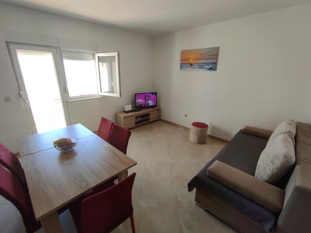 Gazdele sunt minunate, amabile și mereu acolo când ai nevoie de ele Apartamentul este curat, ordonat, contine tot ce ai nevoie, balconul este mare, iar locatia apartamentului este intr-un loc linistit. Marea este curată și priveliștea la Velebit încântă din ce în ce mai mult. Cu siguranta recomandari calde. Ne mai vedem