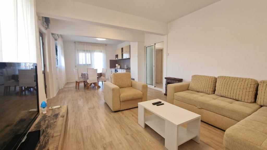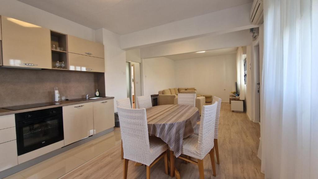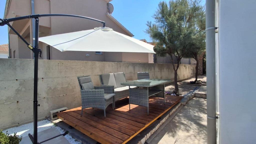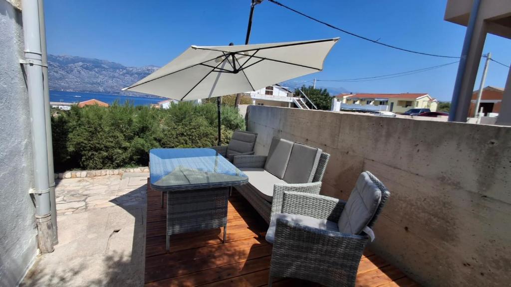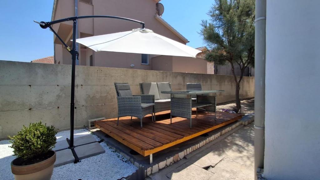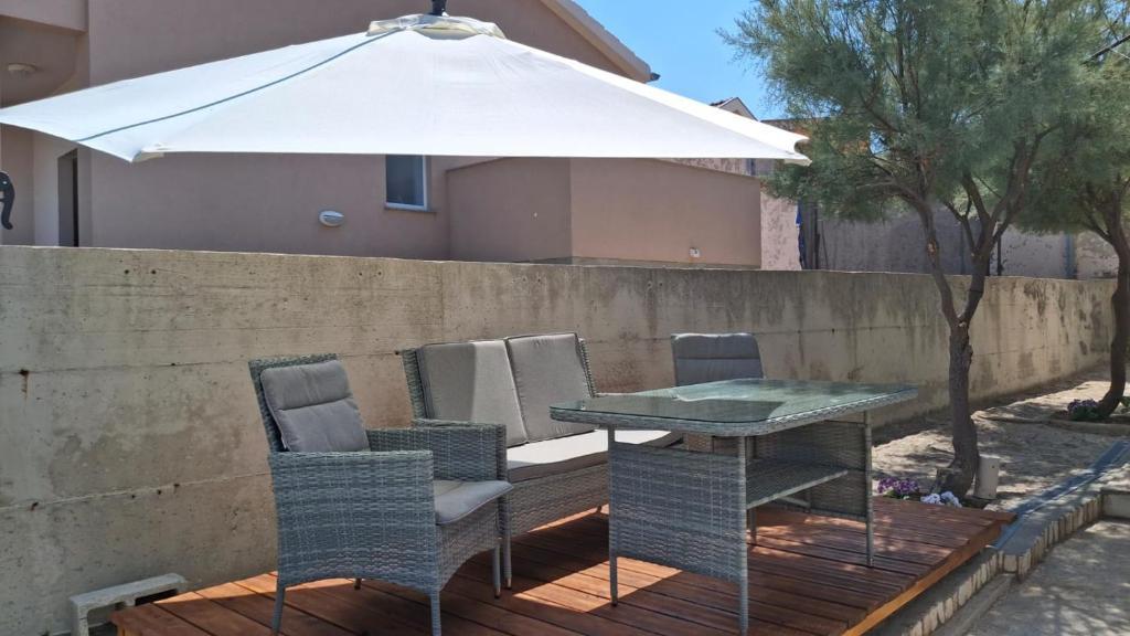 Oaspeții noștri au la dispoziție 2 apartamente complet separate, parcare și o grădină complet utilată. În grădină există o facilitate specială cu grătar și duș exterior. Apartamentul oferă o priveliște frumoasă asupra mării și a muntelui Velebit, iar plaja se află la doar 3 minute de mers pe jos.