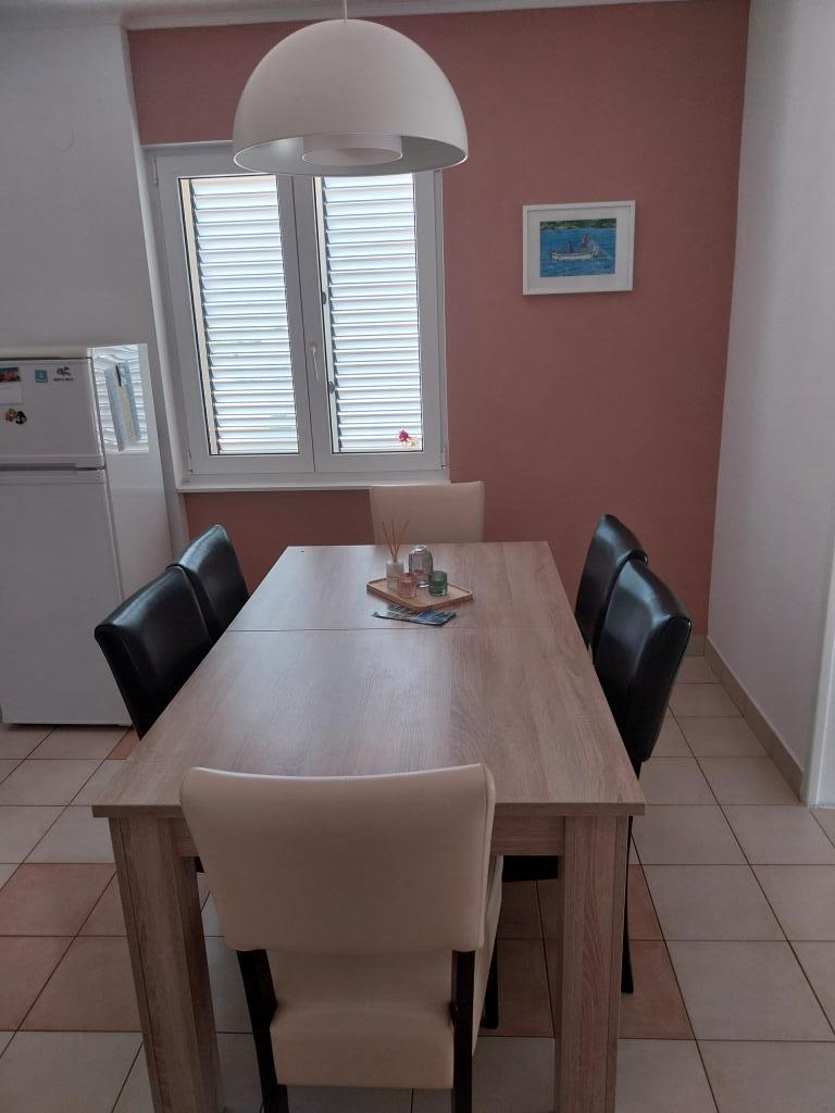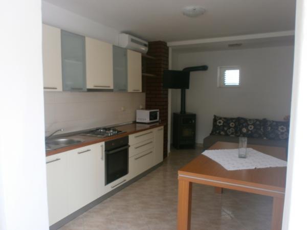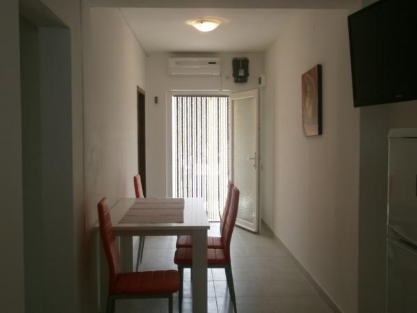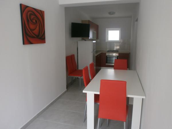 Apartamentele nou construite la parterul unei case familiale și un apartament confortabil de 85 m2 la primul etaj al casei sunt complet utilate (aer condiționat, antena satelit, internet, cuptor cu microunde). Situat la 30 de metri de mare și la 50 de metri de centrul orașului, cu magazine, restaurante, măcelări, farmacii, oficii poștale, ambulanțe și biblioteci.
