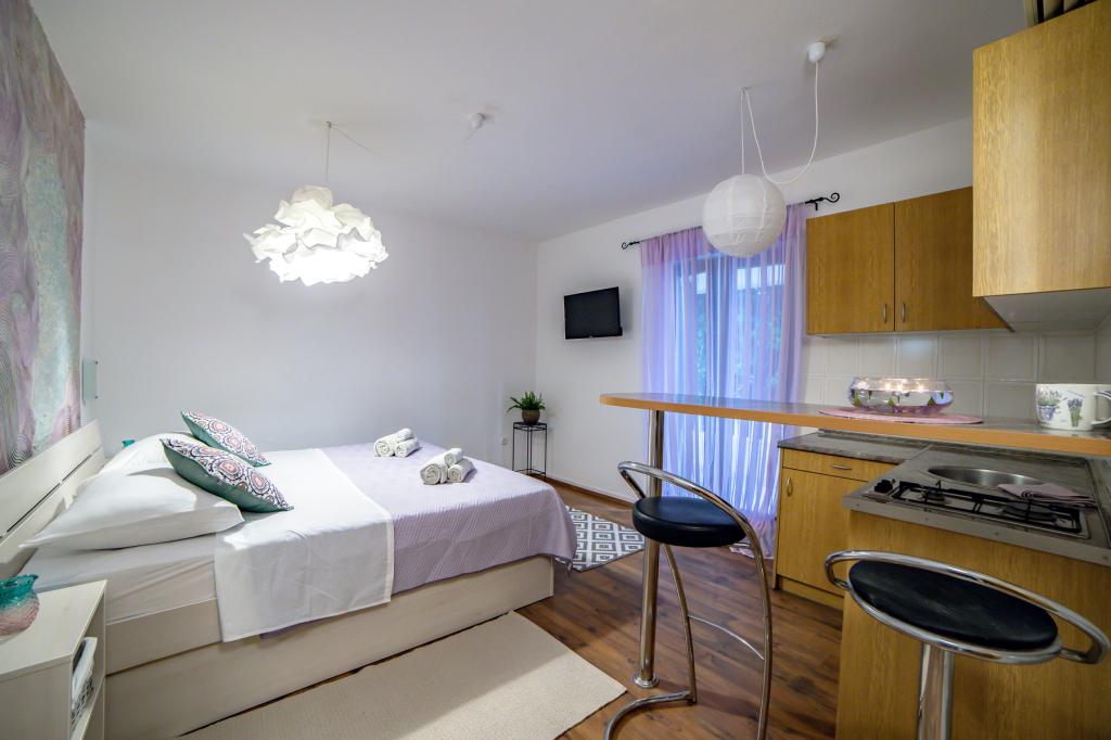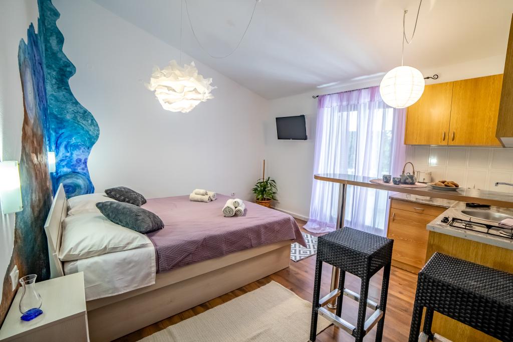 Apartments Horizont sunt situate lângă plajă în Ražnje, un sat tradițional de pescari, la numai 30 km de Šibenik. Apartamentele au o terasă mobilată cu vedere la mare. În întreaga proprietate este disponibil WiFi gratuit. Toate apartamentele au aer condiționat și TV prin cablu, bucătărie sau chicinetă și zonă de luat masa. Toate unitățile au, de asemenea, o baie privată cu duș și uscător de păr. Restaurantul poate găzdui 150 de oaspeți și servește specialități locale și internaționale într-o atmosferă autentică. Marina Frapa din Rogoznica este la 11 km, iar Palatul lui Dioclețian din Split, protejat de UNESCO, este la 54 km de proprietate. Aeroportul Split este la 32 km de proprietate.