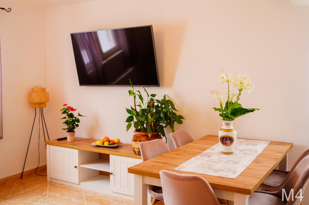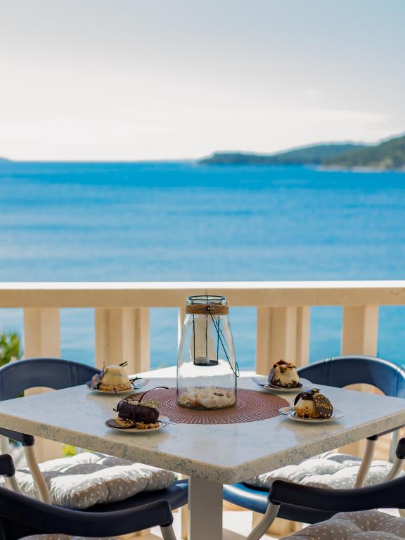Ca parte a apartamentelor noastre, oferim și un restaurant cu mâncăruri tradiționale dalmate, pregătite în mod familiar. De asemenea, ca parte a cazarii, avem o piata cu toate cele necesare si paine proaspata zilnica si alte produse alimentare. Posibilitatea de asistență în organizarea diverselor excursii, scufundări, pescuit, închiriere de bărci și multe alte oferte de la asociații noștri locali.