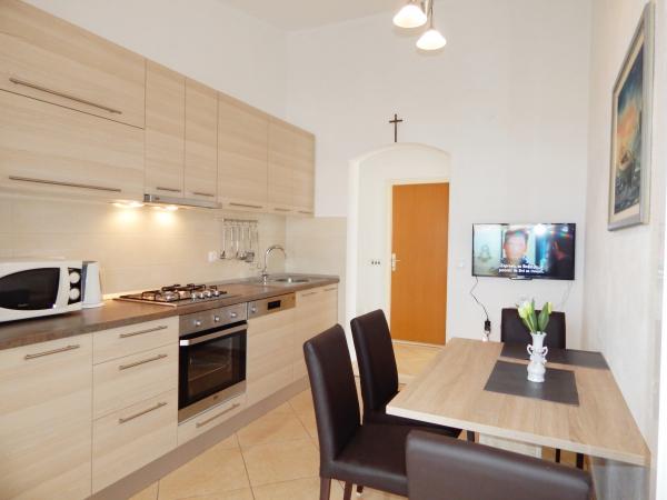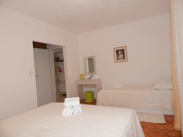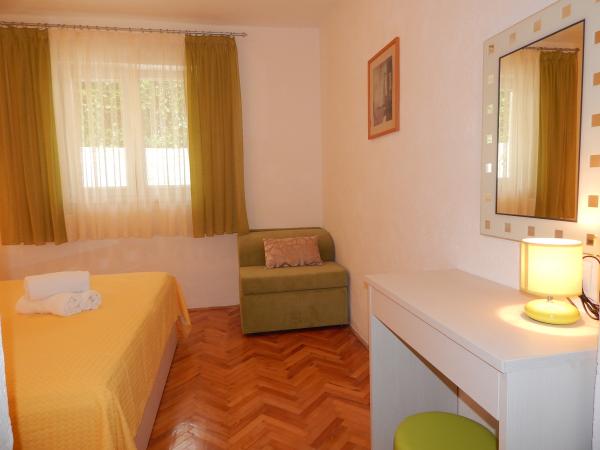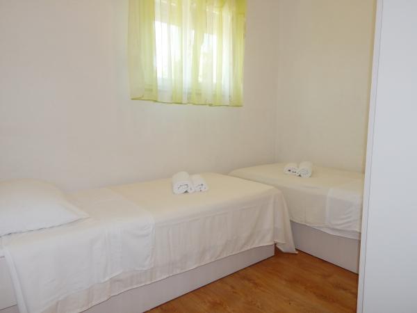 Nedeljko Apartamentele sunt situate într-o zonă rurală liniștită din natură aproape de neatins si apa foarte clar. Detinem 5 unități de o intrare privată dedicată și un loc de parcare în clădirea instanței. Apartamentele sunt complet echipate și moderne. Ne sunt situate în al treilea rând de la mare. Avem 2 minute de mare, și la 10 minute de centrul orasului. Avem un dig din beton pentru oaspeții noștri. În spatele clădirii se află o zonă cu o masă mare pentru oaspeți și duș în aer liber plăcută și caldă. De asemenea, în grădina din fața casei este de copii topogan. Aproape de apartament există un centru sportiv pentru copii ar putea juca în mod liber.