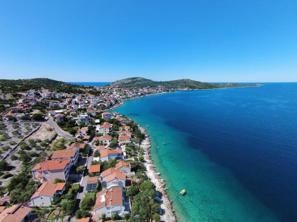 Dragi vizitatori! Dacă sunteți în căutarea unui loc pentru o vacanță liniștită și relaxantă pentru dumneavoastră și familia dumneavoastră, vă invităm să o petreceți în apartamentele SKELIN și să vă bucurați de marea cristalină, de apusuri de soare frumoase și de plimbările de seară prin oraș. Apartamentele SKELIN sunt situate în micul sat pescăresc RAŽANJ din golful Ljoljinica, nu departe de Rogoznica, un oraș turistic mai mare, la capătul Dalmației de Nord, între Šibenik și Split, la 45 km de Šibenik și 50 km de Split. Marea se află la 30 de metri de apartament. Strada din fața apartamentului este folosită de vecini doar ocazional, cu câteva mașini, ceea ce garantează o atmosferă liniștită și frumoasă. Această zonă este departe de zgomotul, poluarea orașelor mari și plajele aglomerate, dar totuși suficient de aproape de multe atracții culturale și istorice, care se află la mai puțin de o jumătate de oră de mers cu mașina. Orașul și împrejurimile sunt ideale pentru relaxare, sporturi nautice și diverse forme de recreere, dintre care recomandăm plimbări și alpinism, excursii de o zi din Ražanj, ciclism, scufundări.