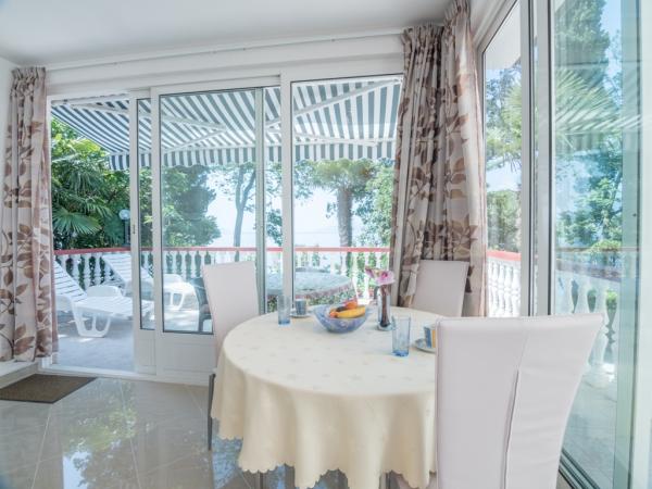 Apartamentul este situat într-o zonă liniștită din Rijeka, la doar 4 km de centrul orașului Opatija și la 5 km de centrul orașului Rijeka. Are ieșire proprie spre plajă, care este la doar 1 minut distanță de apartament și de ieșire la promenadă. Există un loc privat de parcare închis și un grătar. Acesta are o terasă mare spațioasă, cu vedere la Opatija și insula Cres. Sosind de la noi veti avea siguranta intimitatii si odihna necesara deoarece apartamentul se afla intr-o cladire separata.