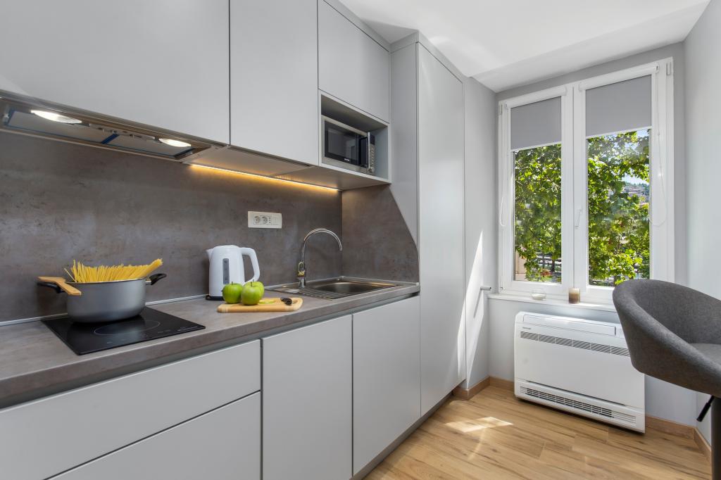 Apartamentele InCenter Rijeka sunt situate în centrul orașului Rijeka, chiar lângă Korzo, într-o locație ideală pentru oaspeții care doresc să fie aproape de tot și să exploreze orașul pe jos. Apartamente studio în centrul orașului Rijeka – self check-in, chiar lângă Korzo Studioul nostru decorat modern este perfect pentru cupluri, călători individuali și oaspeți de afaceri care caută un sejur confortabil, practic și ușor în centrul orașului. Un mare avantaj este autocheck-in-ul prin PIN, care permite o sosire rapidă, flexibilă și fără griji. Apartamentul oferă tot ce aveți nevoie pentru un sejur plăcut: un pat king-size și un spațiu deschis plăcut, o bucătărie complet utilată cu mașină de spălat vase, frigider, cuptor cu microunde, fierbător, aparat de cafea și ustensile, o baie modernă cu duș walk-in și uscător de păr, aer condiționat, TV cu MaxTV IPTV, Netflix și Wi-Fi rapid, parcare în apropiere, restaurante, magazine, transport public și principalele atracții ale orașului la doar câțiva pași de apartament. Apartamentul este situat la etajul 2, fără lift. Dacă sunteți în căutarea unui apartament studio modern în centrul orașului Rijeka, cu o locație excelentă, acces facil și tot ce aveți nevoie pentru un sejur scurt sau de afaceri, InCenter Apartments este o alegere excelentă. Tur virtual Google 360 și mai multe informații: www.incenter.com.hr