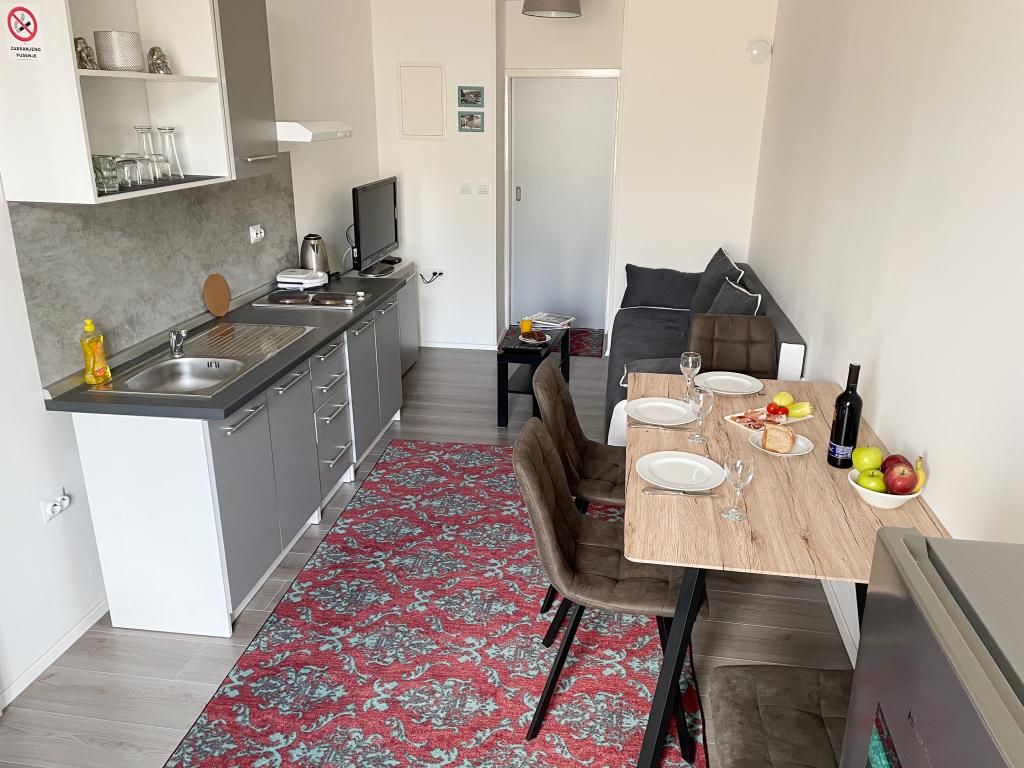 Apartamentele Sea Star sunt situate în apropierea centrului orașului Rijeka. Recent renovate și complet utilate, acestea oferă tot ce aveți nevoie pentru un sejur plăcut (pentru sejururi scurte și lungi). Apartamentul Sea Star 1 este format dintr-o bucătărie (aragaz, cuptor cu microunde, frigider, fierbător, vase și tacâmuri), dormitor/living (pat boxspring 160x200cm, TV SAT, WIFI, lenjerie de pat și prosoape, canapea extensibilă 140x200cm) și baie (mașină de spălat, uscător de păr). Apartamentul poate găzdui 2 persoane (ideal pentru cupluri). În fața apartamentului există un balcon cu mobilier de relaxare. Apartamentul Sea Star 2 este format dintr-o bucătărie/living (aragaz, frigider, fierbător, vase și tacâmuri, TV SAT, WIFI - canapea = pat suplimentar 140x200cm), dormitor (pat 140x200cm și pat 90x200cm, lenjerie de pat și prosoape) și baie (mașină de spălat, uscător de păr). Balconul cu mobilier de relaxare este comun de ambele apartamente. Există o parcare publică în fața clădirii.