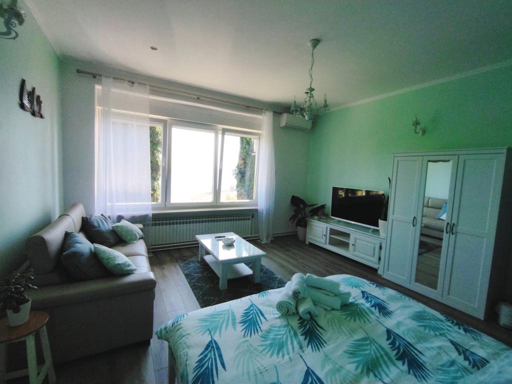Apartamentele complet echipate sunt situate într-o zonă liniștită și atractivă din Rijeka, în Pećine, într-o vilă de familie în al doilea rând la mare, înconjurată de o grădină cu parcare privată. Plajele frumoase sunt la doar 3 minute de mers pe jos, iar centrul orașului Rijeka este la doar 5 minute de mers cu mașina. În apropiere există un centru comercial cu multe facilități. Apartamentele au un dormitor cu vedere la mare, bucatarie, baie, iar apartamentul de la parter are o terasa suplimentara acoperita cu vedere la mare si gratar. Este disponibilă o parcare privată gratuită. Acestea conțin: pat matrimonial 180x200, canapea extensibilă 160x200, Wi-Fi, TV LED/SAT/DVD, radio, filtru de cafea, mașină de spălat, mașină de spălat vase, cuptor cu microunde, aer condiționat, duș, uscător de păr și multe altele.