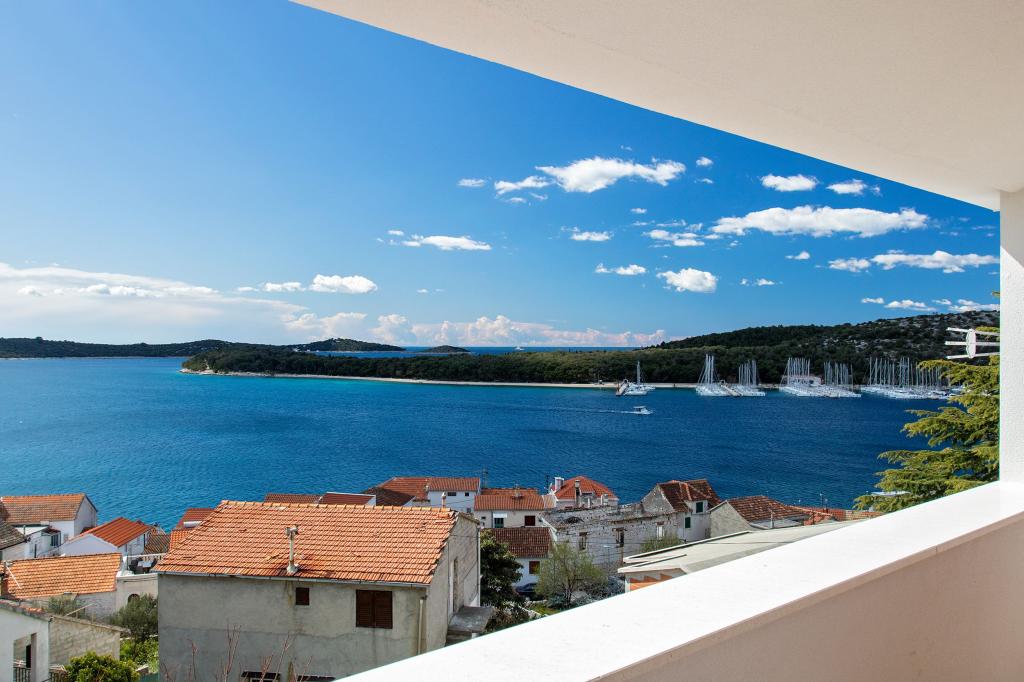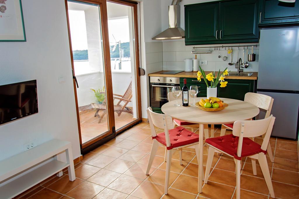 Apartament complet echipat, decorat recent, într-o zonă liniștită din centrul orașului Rogoznica, cu vedere la mare.