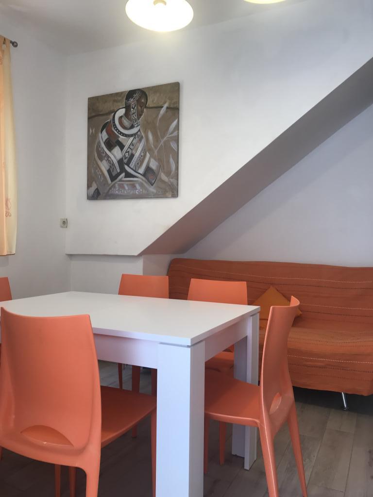 Apartamente complet, moderne si nou utilate, situate primul rand la mare. Unitatea este situată la 10 metri de plajă. Există multe plaje frumoase cu facilități suplimentare în apropierea unității. Facilitatea are posibilitatea de a folosi un semineu si parcare proprie. A1 este un apartament cu o cameră, cu bucătărie, sufragerie și living cu o canapea extensibilă. 130x200 cm. Este situat la parter si are o terasa mare cu gradina. Parking A2 este o garsoniera. Este situat la parter si are o terasa cu gradina. Are vedere la mare. Parcare. A3 este un apartament cu două camere. Există un pat în camera părinților. 160x200 cm, in camera copiilor este un pat dublu. 130x200 cm, și are un living mare cu o canapea extensibilă. 150x200 cm. Este situat la primul etaj si are o terasa mare cu vedere frumoasa la mare. Parcare asigurata. A4 este un apartament cu două camere cu bucătărie și living. Apartamentul este situat în Orzemlje și are un balcon cu vedere la mare și o terasă cu grădină. Parcare