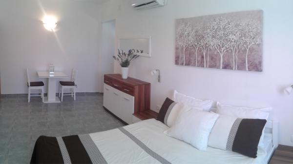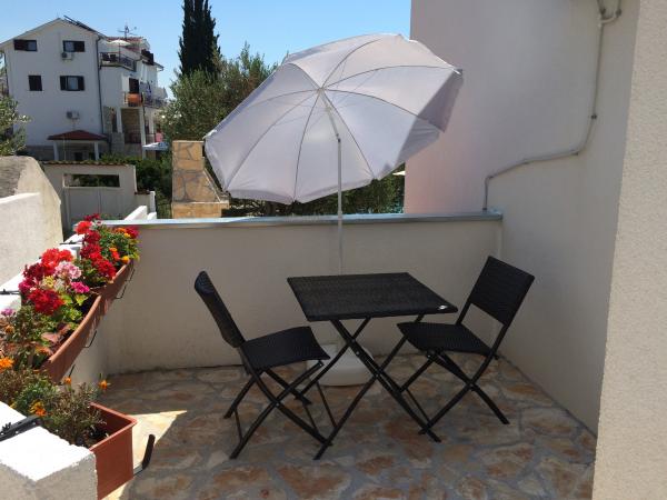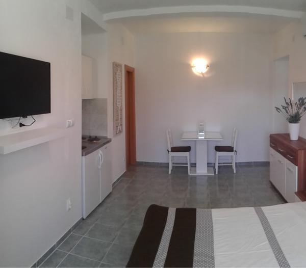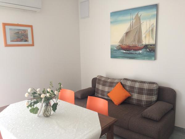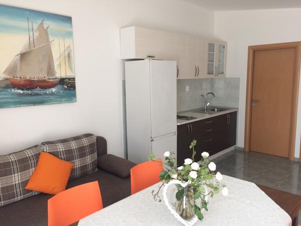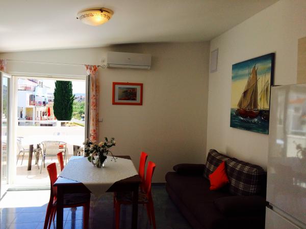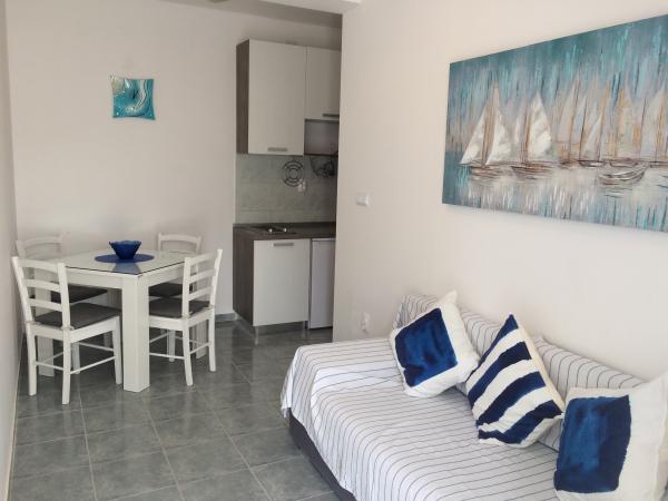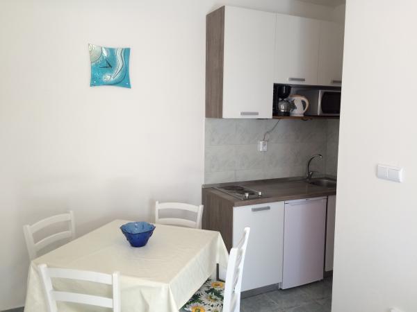 Cazarea a fost foarte bine, confortabil, curat, mobilier nou, clima. Proprietăreasa foarte frumos și solid. Cel mai bun curs a fost de înot. Marea imediat în partea din față a apartamentului, de-a lungul promenadei de coasta si platoul din beton cu acces mult mai bine la apă decât pe plaja. Dar este în raza de acoperire (aproximativ 5 minute in jurul unui golf mic). Mic magazin, de asemenea, aproximativ 5 min. de mers pe jos. Am fost foarte multumiti.