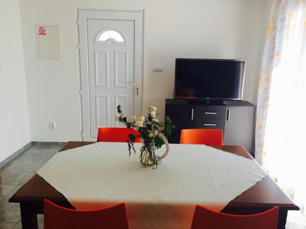 Foarte frumos, simplu și curat preț, acceptabil pentru perioada care începe iunie grătar la îndemână, cu terasă, lângă o frumoasă plimbare în orașul Rogoznica, de asemenea, pentru că achiziționarea, deoarece aproape AP nu este comerț, dar în fiecare dimineață de mers pe jos masina cu pâine și alimente de bază, dar mai ales am încă dormit. Restaurant și bar din apropiere. apă curată și plaje frumoase din apropiere. Cu siguranță aș recomanda întreaga familie, deoarece instalația sunt alte 2 AP. mulțumesc Norbert