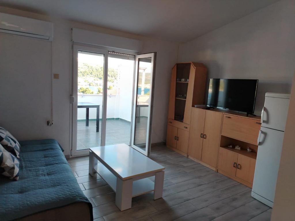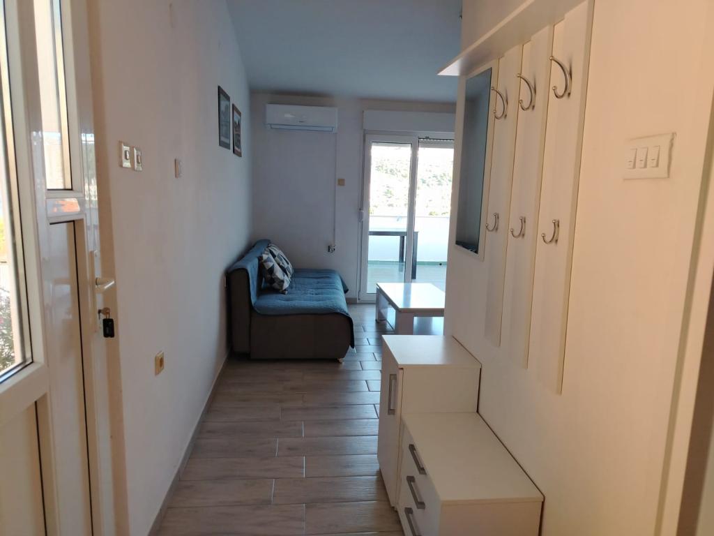 Complet mobilate apartament într-o zonă liniștită din Rogoznica (partea Crljina). Apartamentul este un dormitor pentru 2 persoane (paturi pot fi unite și separate), o bucătărie și un living cu o canapea care se poate transforma intr-un pat dublu, o baie și o terasă cu vedere la mare. Casa este la 100 de metri de plajă și la 10 minute de mers de centrul orasului.