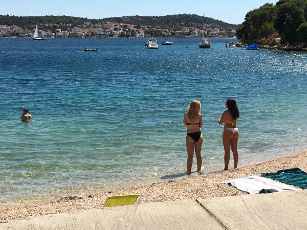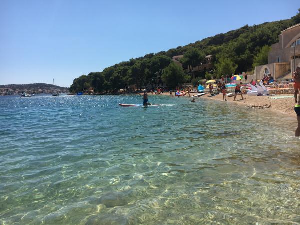 Proprietarul apartament foarte frumos pe 1 Stock curate, ustensile de spatios, bucatarie suficiente. Acesta ar fi scaune de plajă ideale și umbrele de soare pentru oaspeții care călătoresc mult. Plajă umplute cu pietris, foarte curat și arici de mare gratuit! Caiace le-am oferit, chiar și începătorii, sa bucurat, de snorkeling este, de asemenea, foarte plină de evenimente. Această parte a Rogoznica este liniște ceresc. În 10 minute am ajuns la mare de-a lungul partea ocupată a insulei, cu numeroasele sale baruri, restaurante, taverne, supermarket-uri, brutării, legume mare și piață de pește, frumosul port de agrement cu discotecă. În 35 minute te duci la Trogir și Split, la aproximativ 50 minute și oferta culturală este accesibil pe linia de plutire. Ne vom întoarce nici o îndoială! Nota 1: restaurant Atrium - cu preparate delicioase din bucătăria dalmată și Nota 1: Taverna Lantern, ambele au fost gustoase și prețuri favorită în gătit nostru / a Rogoznica. Aceasta insula poate recomanda tuturor să se bucure de pace și liniște în vacanță.