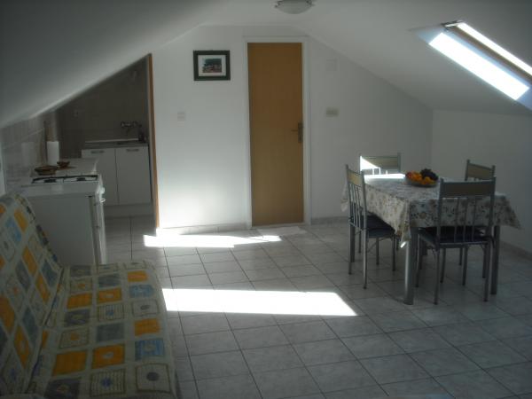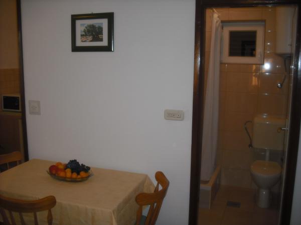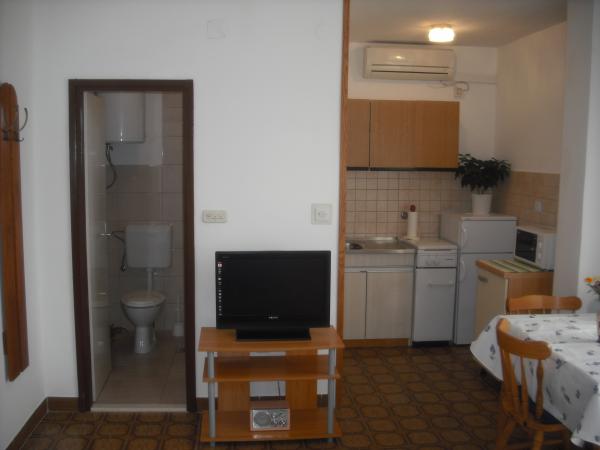 Frano, foarte drăguț și de ajutor. Îi pasă de ordine. Cameră foarte curată și ordonată. O chicinetă dotată cu elementele de bază. Fără mașină de spălat. Apartamentul este la aproximativ 400 de metri de plajă. Un pic departe de magazin și panificație. Ne-am simțit foarte confortabil acolo. Vă recomand.