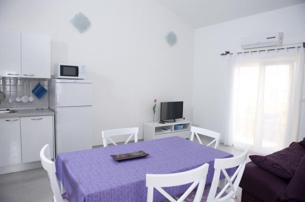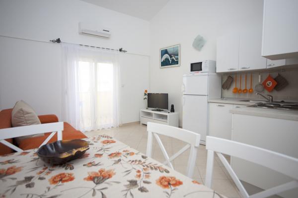 Apartament standard ridicat, curat, decorat cu gust, ideal pentru vacanțe petrecute într-un grup mai mare. Extrem de frumos, proprietarii primitori, plajă cu șezlonguri la câțiva pași de casă și locație frumoasă este una dintre cele mai mari avantaje ale locului, ideal pentru o vacanță liniștită.