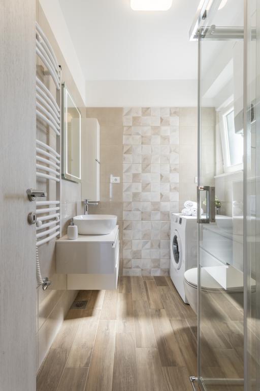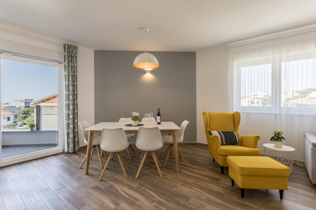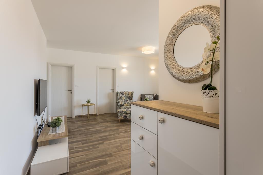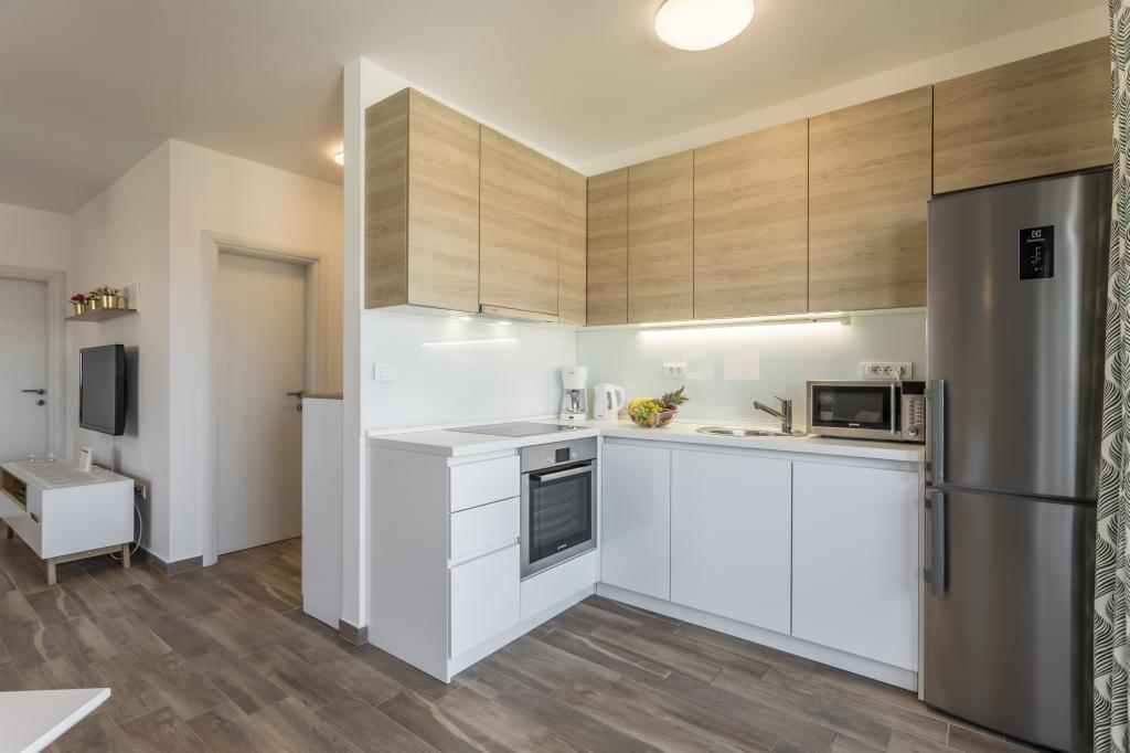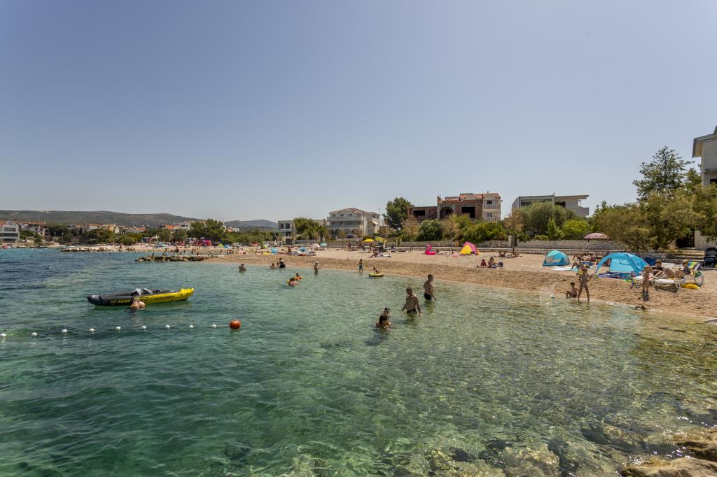 Totul este la fel ca în imagine, nou și clar. Paturile sunt deosebit de de înaltă calitate și confortabile. Alte mobilier și echipamente sunt de calitate și gust combinate. Aparatul de aer condiționat este silențios și nu se aude zgomotele unităților exterioare, astfel încât să vă puteți bucura de terasă și să dormiți în fereastra deschisă. Bucătăria este complet echipată dacă doriți să gătiți. Marea și plaja de beton sunt la o plimbare de 1 minut, în timp ce plaja cu pietriș are o plimbare de 3-4 minute de-a lungul mării. Locuința este ideală pentru o vacanță liniștită de familie. Am fost 4, am petrecut 9 zile în apartament și am simțit toți în apartament și au fost mai mult decât fericit! Dl. Damir și soția lui sunt foarte buni.