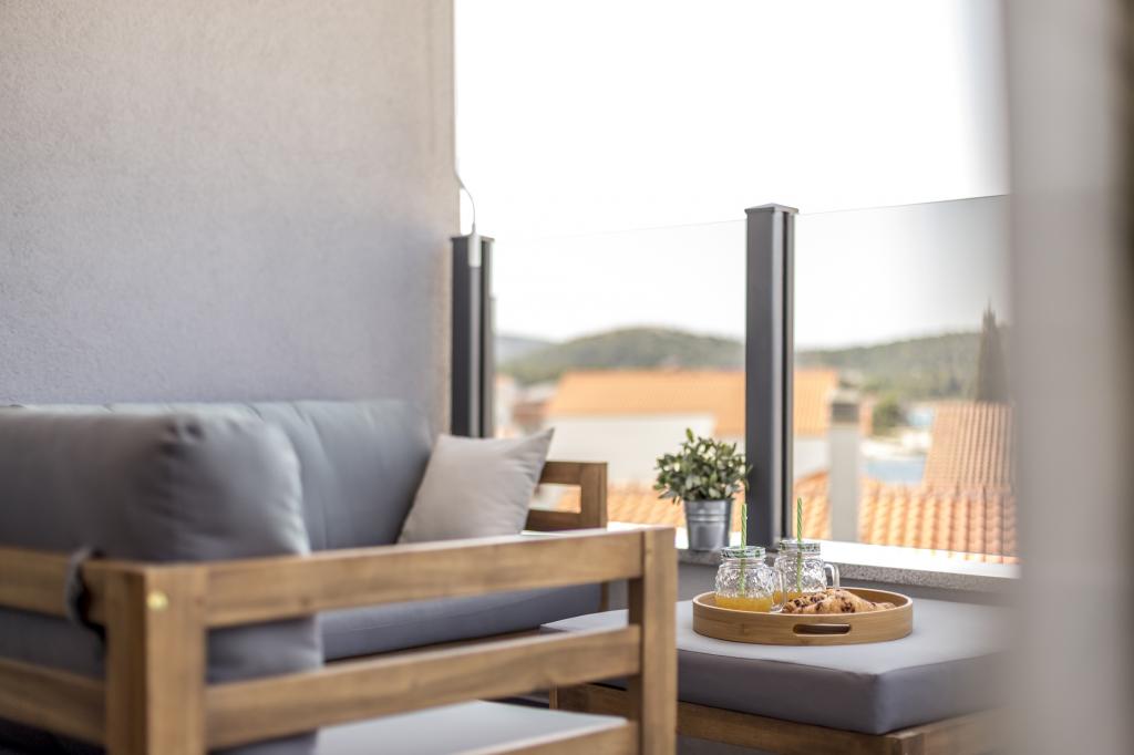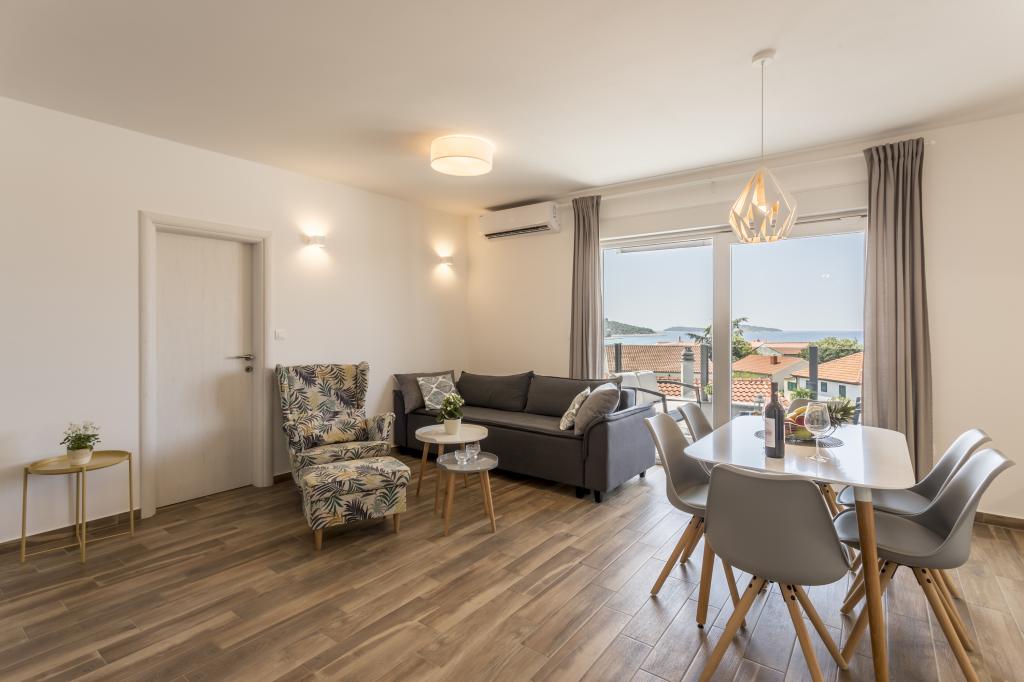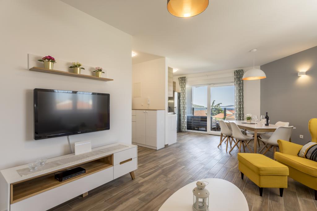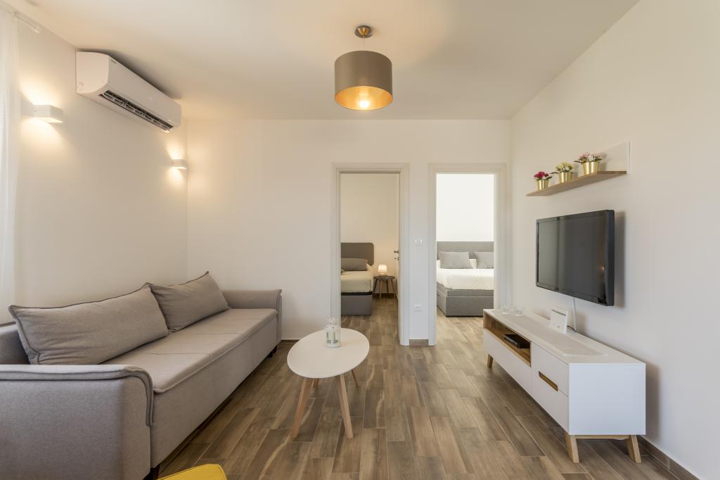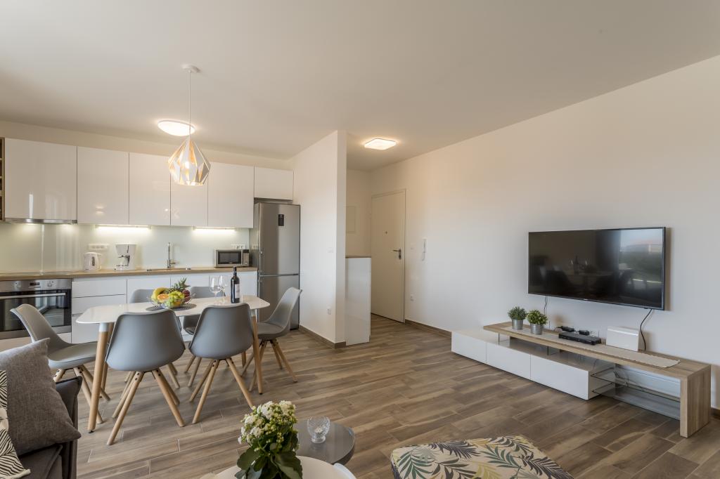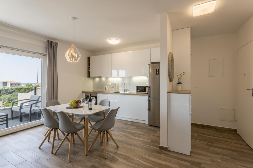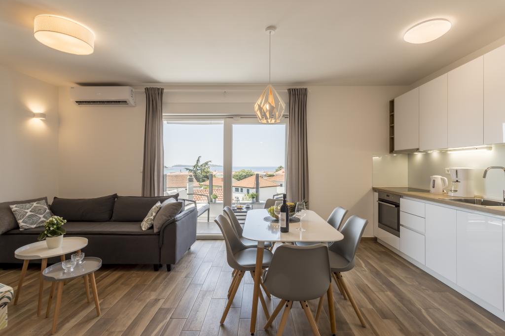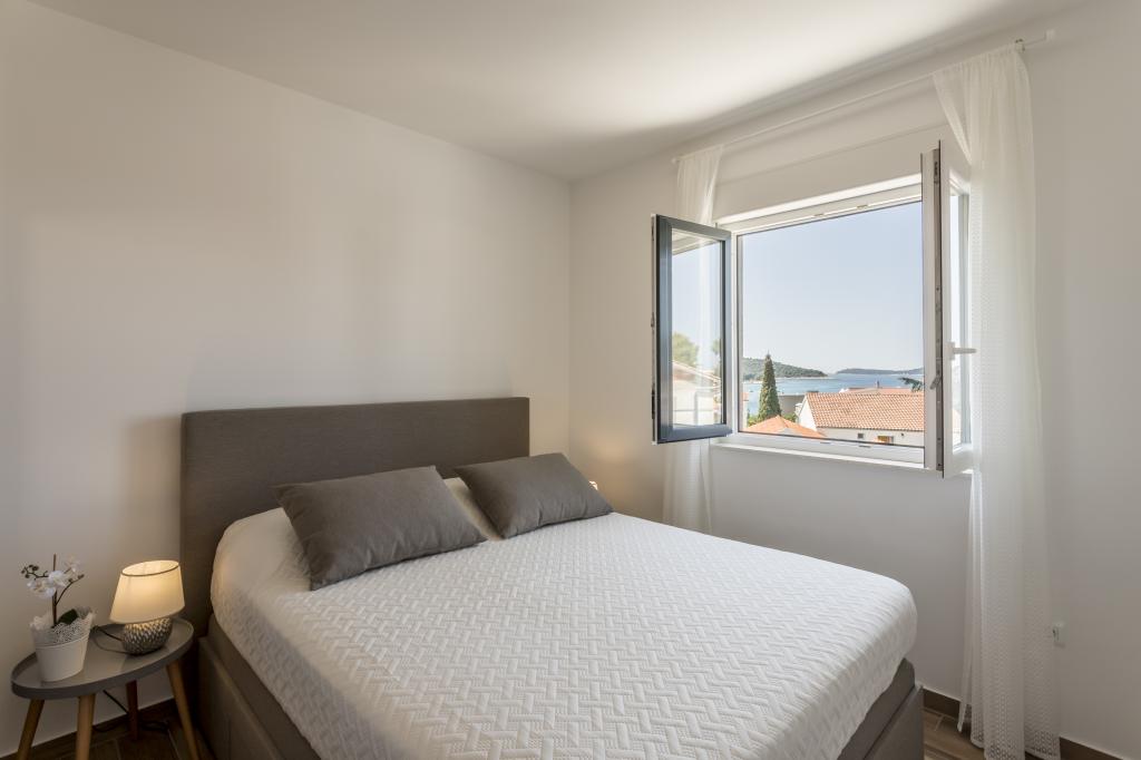 Apartamente noi și luxoase mobilate și complet echipate, cu vedere la mare, la doar o plimbare de o plimbare de mica plajă de pietriș, în partea liniștită a localității Rogoznica, zona Lozica. Apartamentele sunt situate la al doilea etaj al unei clădiri noi, în fața căreia există un spațiu de parcare gratuit. Se compune din două dormitoare duble cu paturi mari, bucătărie și sufragerie cu living, baie și terasă cu vedere panoramică la mare.