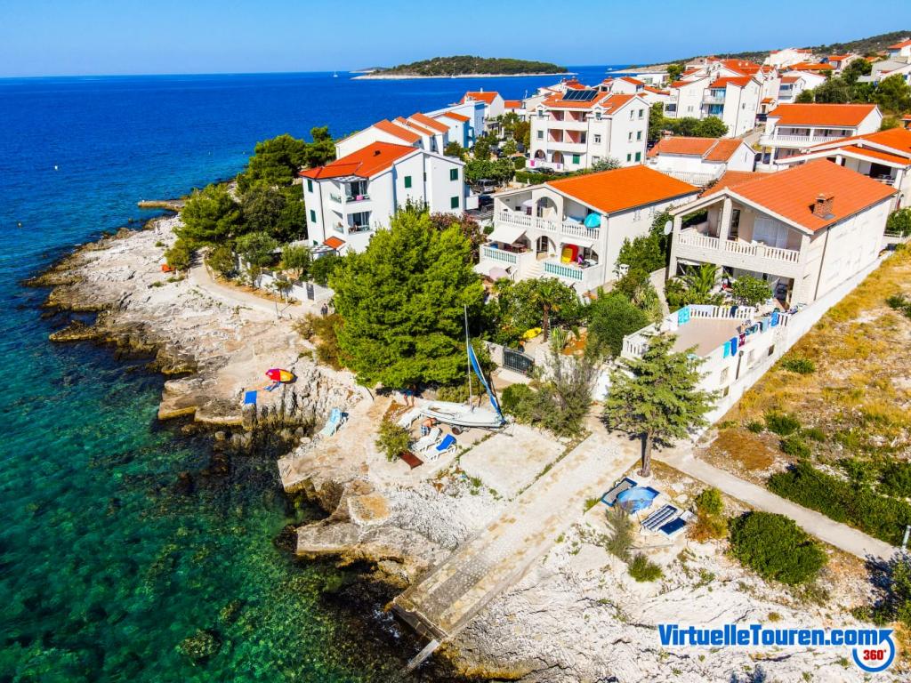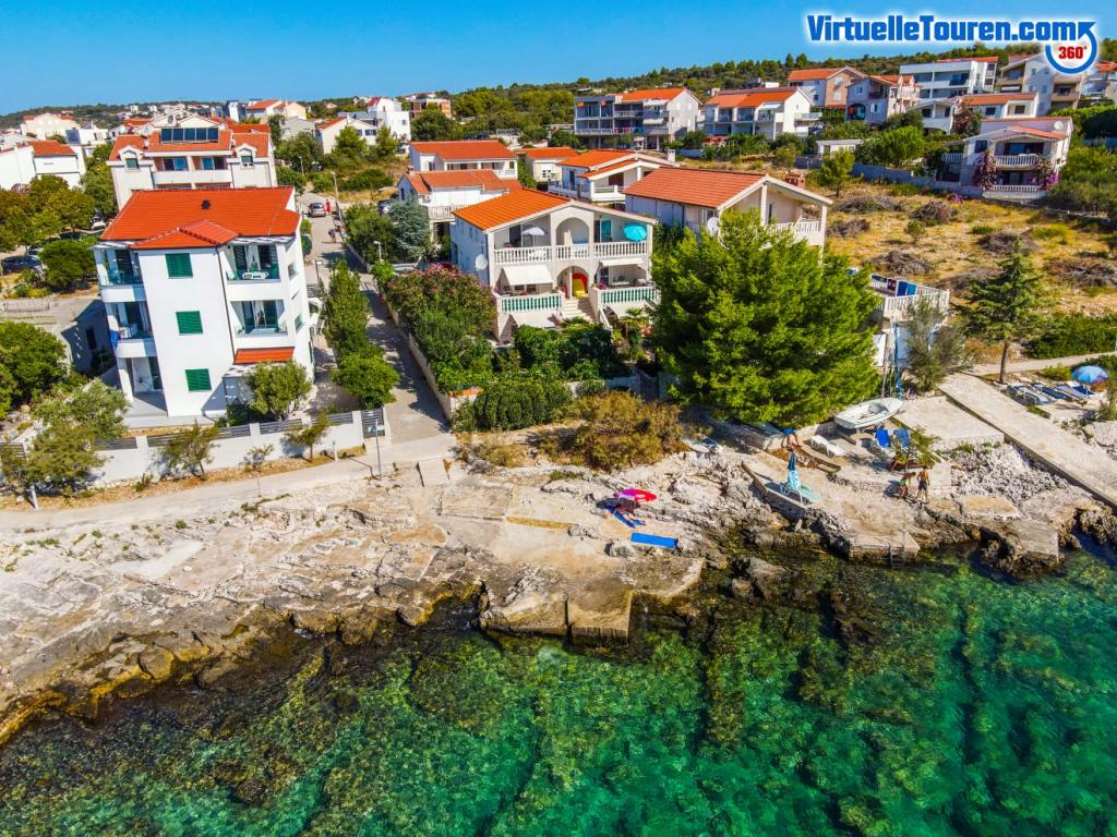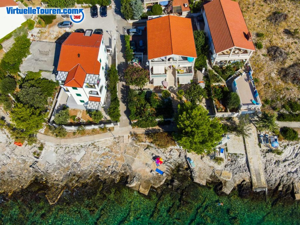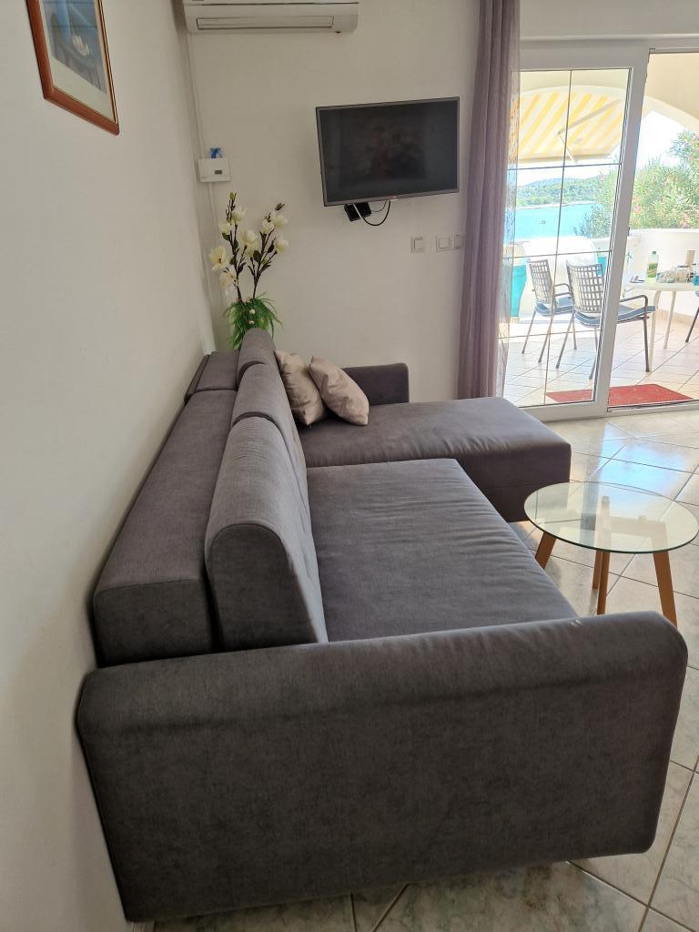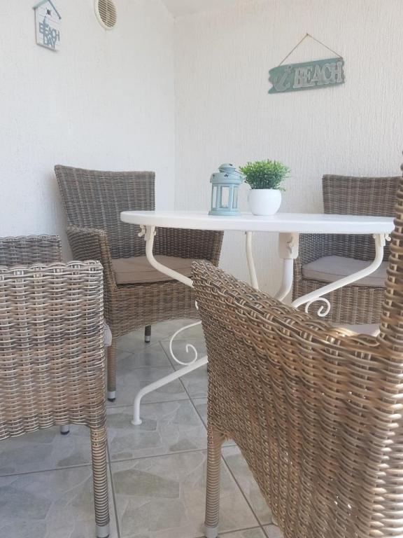 Evadați de stres și mulțime... Veniți și relaxați-vă! Apartamente confortabile, spațioase, cu două dormitoare, cu o terasă luxoasă, situate în primul rând la mare, cu plaja în fața casei, vedere frumoasă la mare și grădină luxuriantă din toate apartamentele.